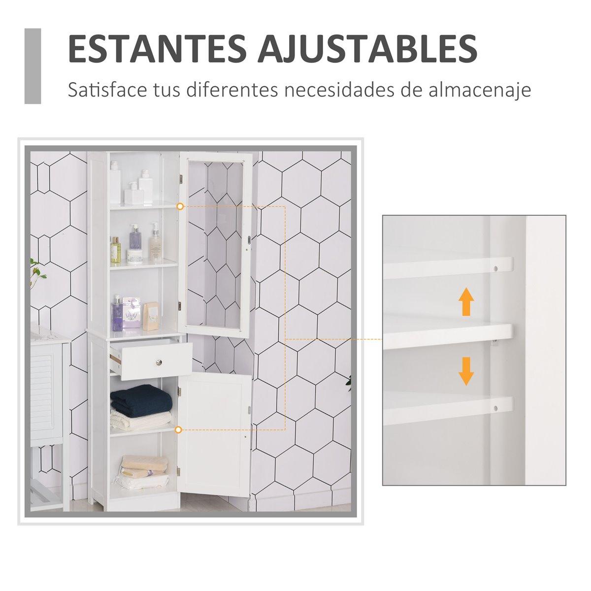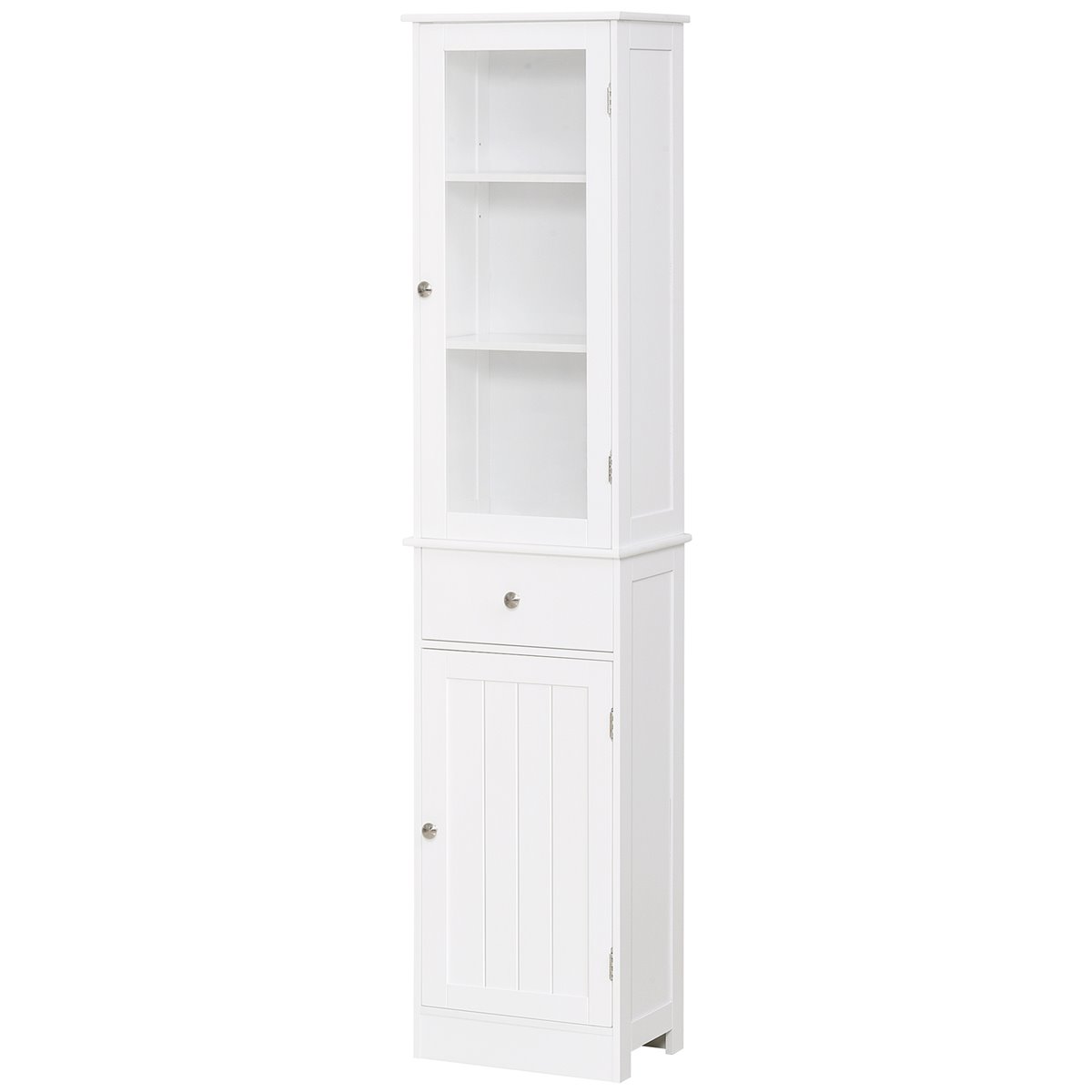Este móvel de casa de banho de kleankin está desenhado para combinar em qualquer casa de banho de estilo moderno. Seu desenho compacto é ideal para casas de banho pequenas onde o espaço é limitado, sobre tudo em aqueles em que existem espaços estreitos de desperdiçados. Composto por 5 prateleiras fechadas por 2 portas e uma gaveta, oferece um espaço amplo de armazenamento para seus artigos e produtos de limpeza. É a solução perfeita para manter sa sua casa de banho organizada Características: - Móvel de casa de banho auxiliar de desenho elegante, adaptará-se perfeitamente a maioria dos espaços - Móvel fabricado de placa de MDF de grau P2 para o uso a largo prazo, com porta superior de acrílico transparente - Armário compacto e alto, ideal para espaços reduzidos e estreitos - Com 3 prateleiras na parte superior e 2 na parte inferior, separadas por uma gaveta no meio - As prateleiras inferiores se pode ajustar a altura para adaptar a diferentes necessidades - Com dispositivo anti-rolamento de segurança, para fixar na parede e evitar que se tombe ou balance - Requer montagem Especificaciones: - Cor: Branco - Material: MDF e acrílico - Medidas totais: 40x27x171,5cm (CxLxA) - Medidas da porta superior: 35x84cm (CxA) - Medidas do interior do armário superior: 35x23,8x84cm (CxLxA) - Medidas do interior da gaveta: 32,3x21,7x10cm (CxLxA) - Medidas da porta inferior: 34,8x58,8cm (CxA) - Medidas do interior do armário inferior: 35x23,8x58,8cm (CxLxA) - Medidas de cada prateleira: 35x23,8cm (CxL) - Capacidade de carga: 5 kg (cada prateleira), 2 kg (gaveta) e 27 kg (total) - Referência: 834-291 O pacote inclui: - ● 1x Armário de casa de banho; ● 1x Manual de instruções