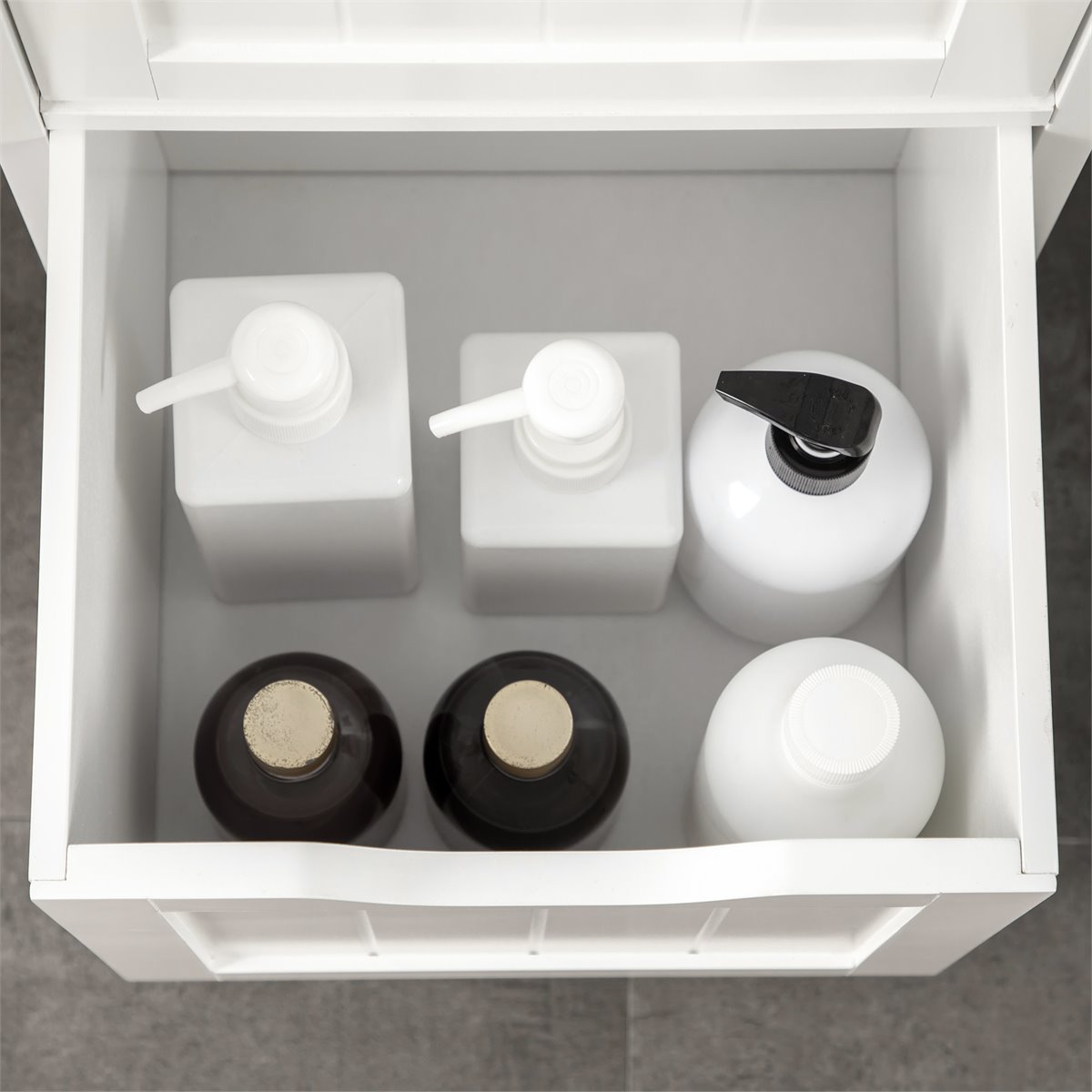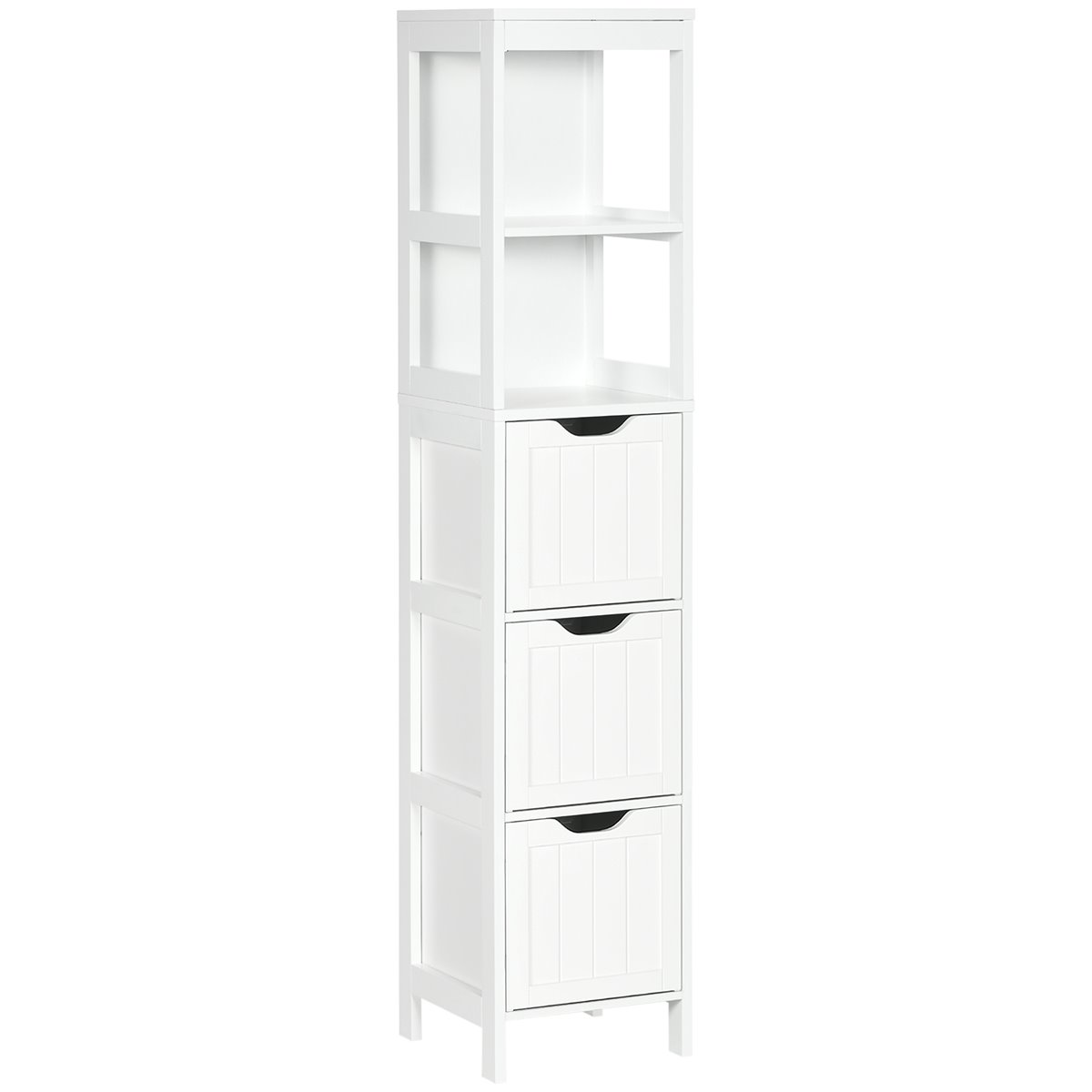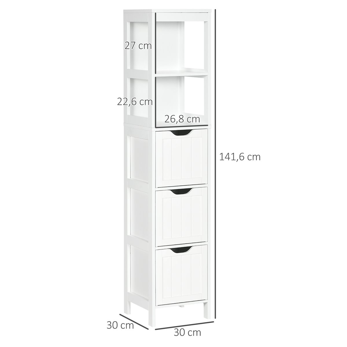 Otimize o espaço e mantenha a casa arrumada com este elegante armário auxiliar para casa de banho da kleankin. Com design simples e cor neutra, adapta-se facilmente a casas de banho, cozinhas, salas e outros espaços. Fabricada em MDF resistente, oferece amplo espaço para guardar toalhas e produtos de higiene. Ideal para casas compactas que precisam de arrumação extra. Inclui sistema anti-tombo na traseira para maior estabilidade e segurança Características: - Armário compacto e alto, perfeito para casas de banho estreitas - Ideal para casas de banho, lavandarias, cozinhas, entre outros - Conta com 2 prateleiras abertas e 3 gavetas para muita arrumação - Fabricado em MDF resistente e ideal para uma utilização prolongada - Possui um sistema anti-tombo para maior segurança e estabilidade - Requer montagem Especificaciones: - Cor: Branco - Material: MDF - Medidas totais: 30x30x141,6 cm (CxLxA) - Medidas da prateleira aberta: 26,8x28x27/22,6 cm (CxLxA) - Medidas internas da gaveta: 24,5x25,5x22,6 cm (CxLxA) - Carga máxima: 17,5 kg (total), 5 kg (prateleira) e 2,5 kg (gaveta) - Referência: 834-492V00WT O pacote inclui: - ● 1 x Armário casa de banho; ● 1 x Manual de instruções