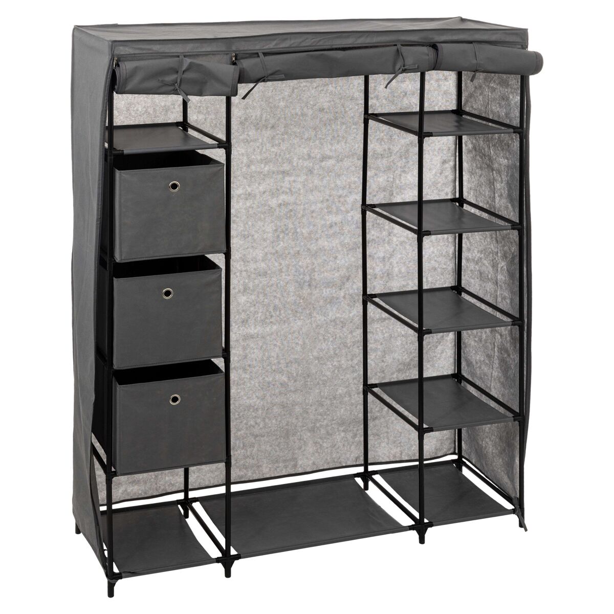 Transforme a sua casa com a combinação perfeita de elegância, funcionalidade e utilidade. Nosso armário lateral de tecido irá surpreendê-lo pelo espaço de armazenamento, estrutura e durabilidade. Perfeito para o seu quarto, lavanderia ou até mesmo para a garagem, mergulhe em um mundo de estilo contemporâneo e funcionalidade inteligente. O modelo, confeccionado com estrutura metálica e tecido cinza, oferece uma solução versátil de armazenamento. Com barra suspensa, 11 prateleiras e 3 caixas, organize facilmente suas roupas, sapatos e acessórios. A estrutura robusta garante resistência e durabilidade, enquanto a cor cinza proporciona um toque moderno e elegante. Adicione-o ao seu espaço agora. Medidas: Altura 170 cm Largura 135 cm Profundidade 45 cm Trata-se de um móvel com kit de montagem, que inclui manual de instruções e parafusos.