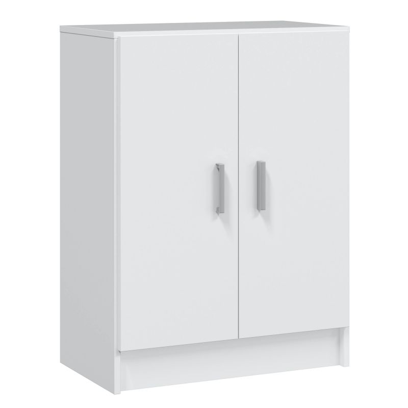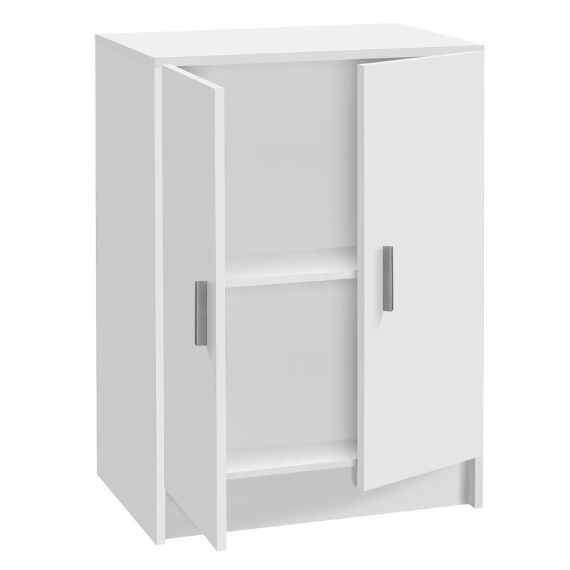 O armário baixo multiusos é um pequeno armário auxiliar com 2 prateleiras interiores e 2 portas com puxadores que pode ser utilizado como elemento de arrumação adicional em quase todas as divisões da casa.