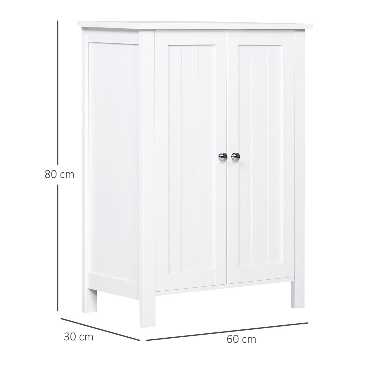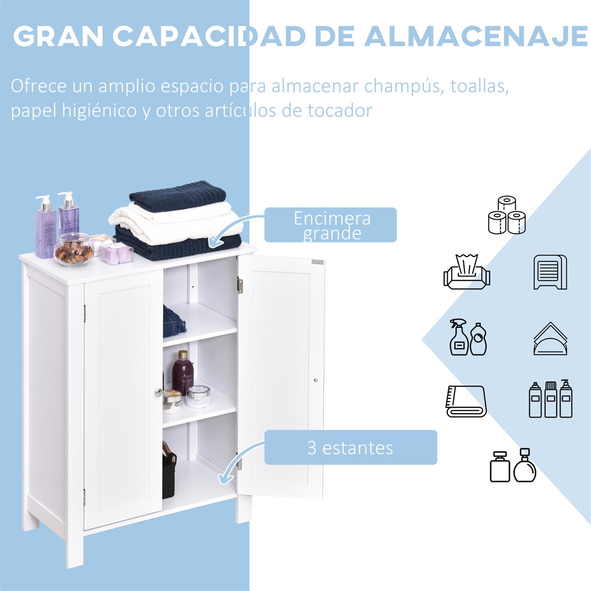 Complete a sua casa de banho ou cozinha com este armário da Kleankin, concebido para integrar-se facilmente em qualquer espaço. Seu desenho compacto e compacto é ideal para banheiros pequenos, oferecendo amplo espaço para produtos de higiene e limpeza. Este móvel feito em MDF e pintado de branco, possui 2 prateleiras internas reguláveis em altura e 2 portas com puxadores cromados para fácil abertura e fechamento. Além disso, vem com um anti-rolamento para fixar na parede Características: - Móvel moderno e funcional, de tamanho compacto, ideal para pequenos espaços - Duas prateleiras interiores reguláveis em altura para guardar os artigos de acordo com as suas necessidades - Fabricado em placa de MDF pintado com base elevada para proteger os itens da umidade do solo - Duas portas com elegantes puxadores cromados - Amplo espaço interior para produtos de higiene e limpeza - Pode ser usado no banheiro, quarto, sala de estar ou sala de jantar - Com dispositivo anti-rolamento na parte traseira para maior segurança - Requer montagem Especificaciones: - Cor: Branco - Material: MDF - Medidas totais: 60x30x80 cm (CxLxA) - Medidas da prateleira: 55x27 cm - Medidas de cada porta: 24x69 cm - Carga máxima: 20 kg - Referência: 834-183 O pacote inclui: - ● 1x Móvel casa de banho; ● 1x Manual de instruções