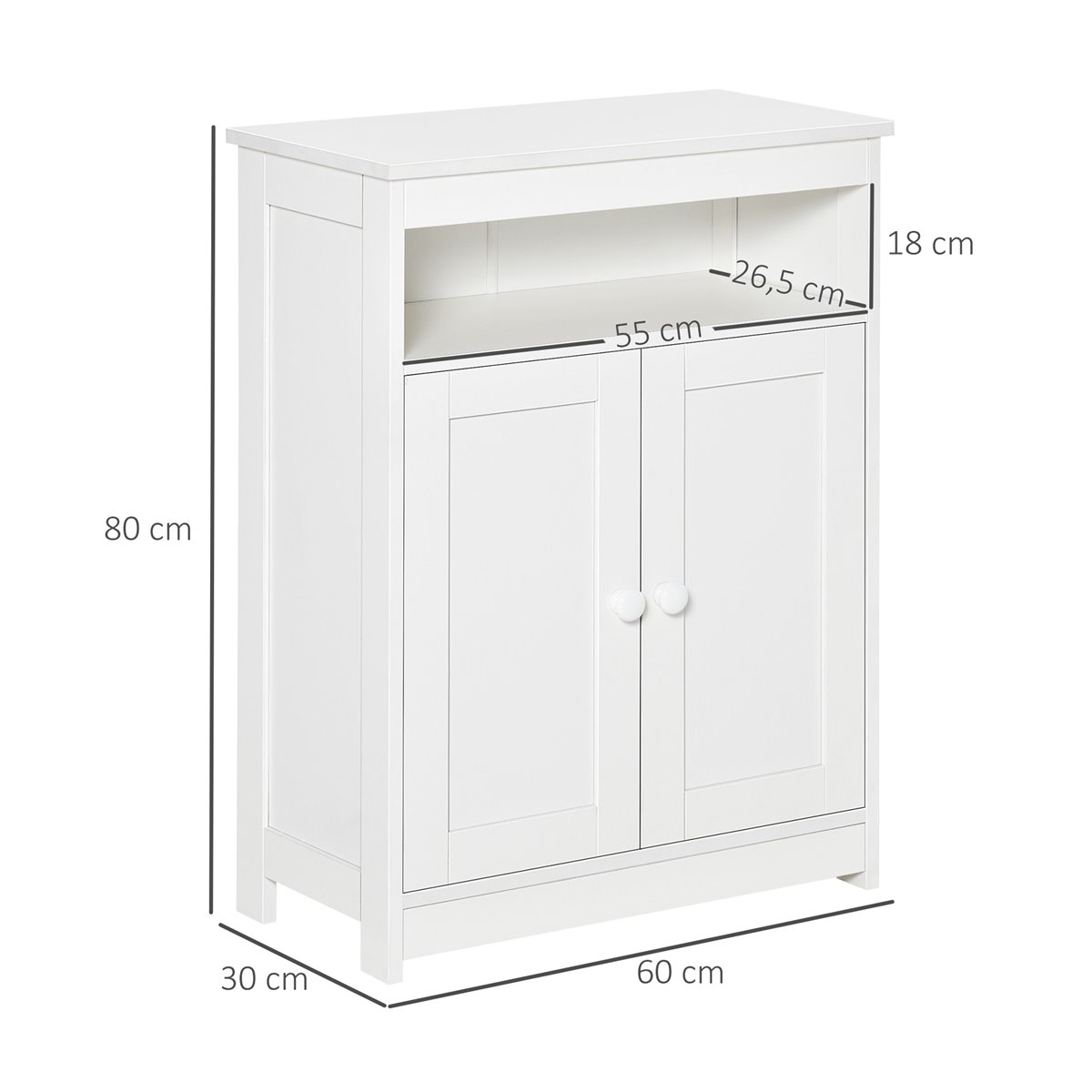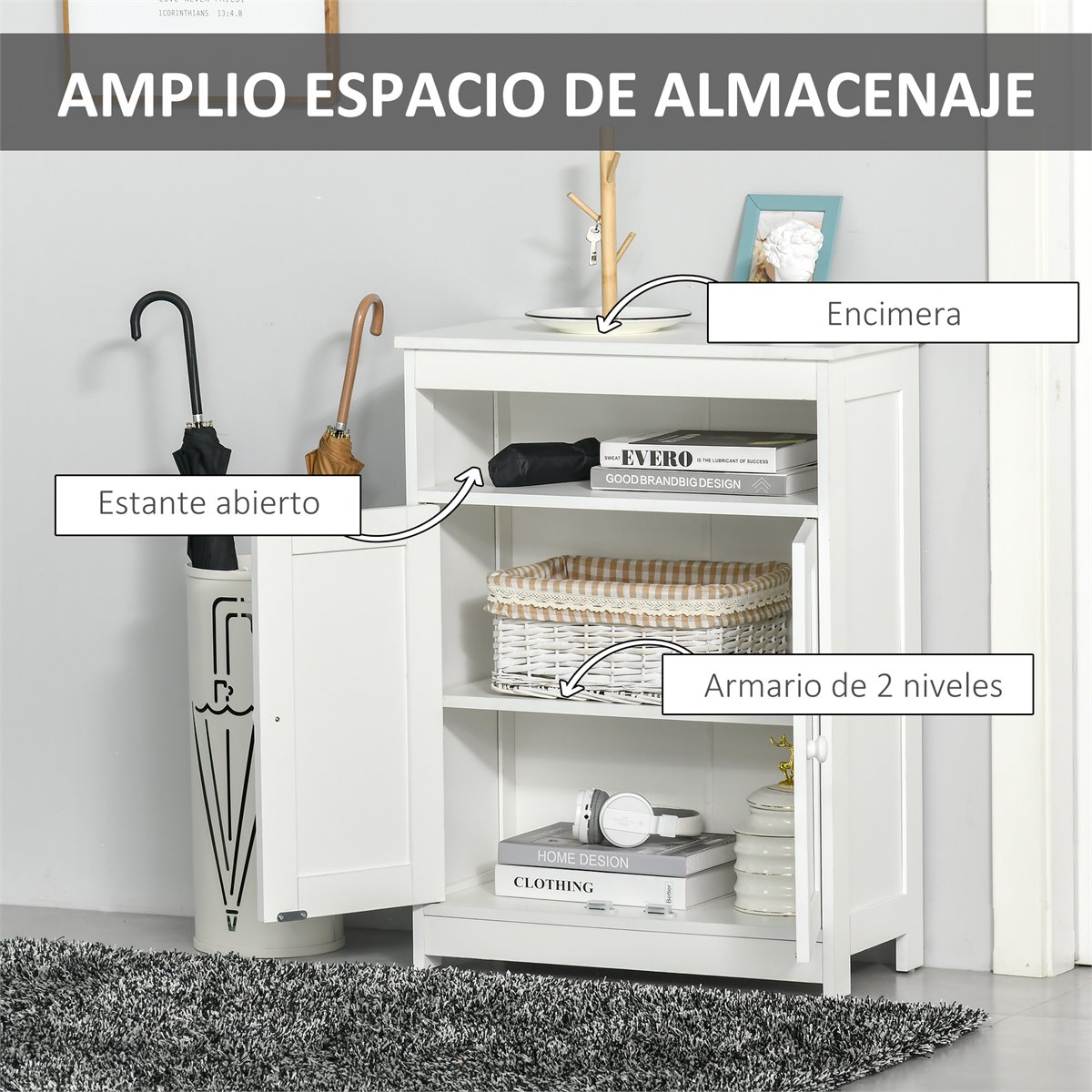 Este móvel auxiliar da HOMCOM é uma boa compra se você quiser manter a ordem em casa. Possui uma bancada espaçosa, um compartimento aberto logo abaixo e um gabinete de porta dupla com uma prateleira interna ajustável. Graças ao seu desenho, é uma peça de mobiliário que pode considerar tê-la em vários espaços. Ficará igualmente bonito na casa de banho, sala de estar, quarto, etc. E se também combiná-lo com móveis semelhantes, vai dar um toque requintado e belo à sua casa. Não pense duas vezes! Características: - Aparador clássico que vai combinar bem com qualquer decoração da sua casa - Possui bancada, compartimento aberto e armário com porta dupla - Pode ser utilizado como armário de armazenamento, ideal para entrada, sala de jantar, quarto e cozinha - Amplo espaço para guardar roupas, brinquedos, livros e outros artigos básicos de uso diário - Fabricado em melamina de madeira, possui estrutura robusta e de fácil limpeza - Com dispositivo de segurança anti-queda para fixar à parede e evitar que tombe ou oscile - Requer montagem Especificaciones: - Cor: Branco - Material: Madeira melamina - Medidas totais: 60x30x80 cm (CxLxA) - Medidas do compartimento aberto: 55x26,5x18 cm (CxLxA) - Medidas das portas do armário: 28x50,5 cm● Peso máximo suportado: 50 kg (total), 15 kg (compartimento), 5 kg (prateleira) - Referência: 834-340WT O pacote inclui: - ● 1x Móvel auxiliar; ● 1x Manual de instruções