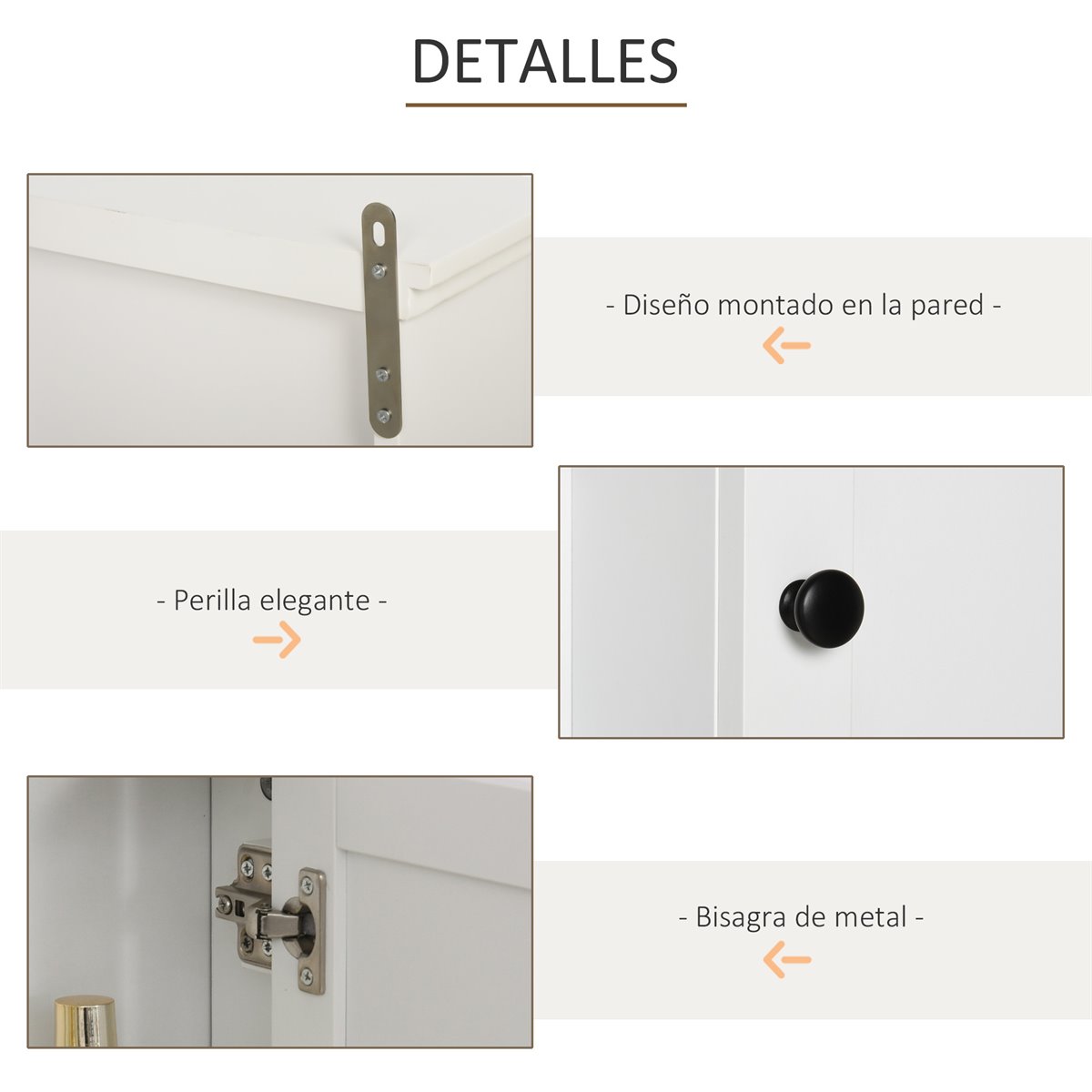 - ARMÁRIO DE PAREDE: Ideal para arrumação em qualquer canto da casa, desde o corredor até à casa de banho. - VERSÁTIL: Graças à combinação de prateleiras abertas e armário, este móvel será útil para guardar diferentes tipos de objectos e também para expor os seus ornamentos preferidos e as suas melhores fotografias. - PRATELEIRA AJUSTÁVEL: Poderá ajustar a altura da prateleira no interior do armário, para que se adapte aos diferentes tamanhos das suas coisas. - FÁCIL DE LIMPAR: Limpe-o com um pano húmido para que esteja sempre perfeito. - MEDIDAS: 53x14,5x50,5 cm (CxLxA). Suporta um peso máximo de 30 kg.
