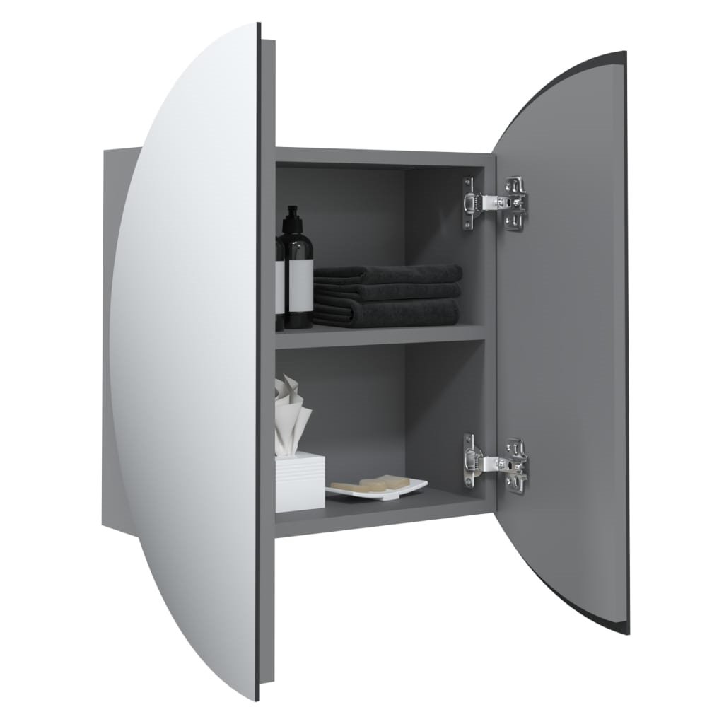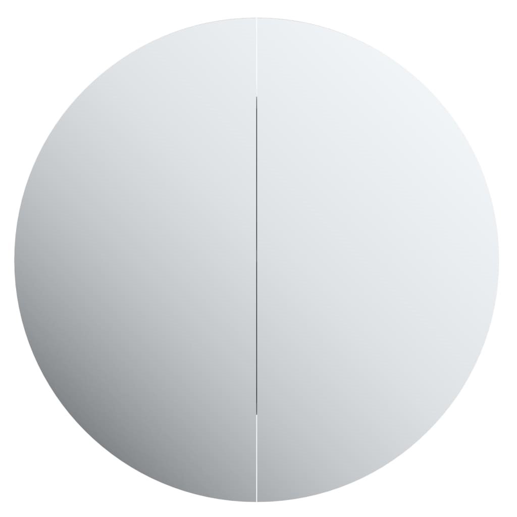 Mantenha os seus artigos essenciais de maquilhagem bem organizados com este moderno armário de casa de banho com espelho redondo e cordão de luzes LED!