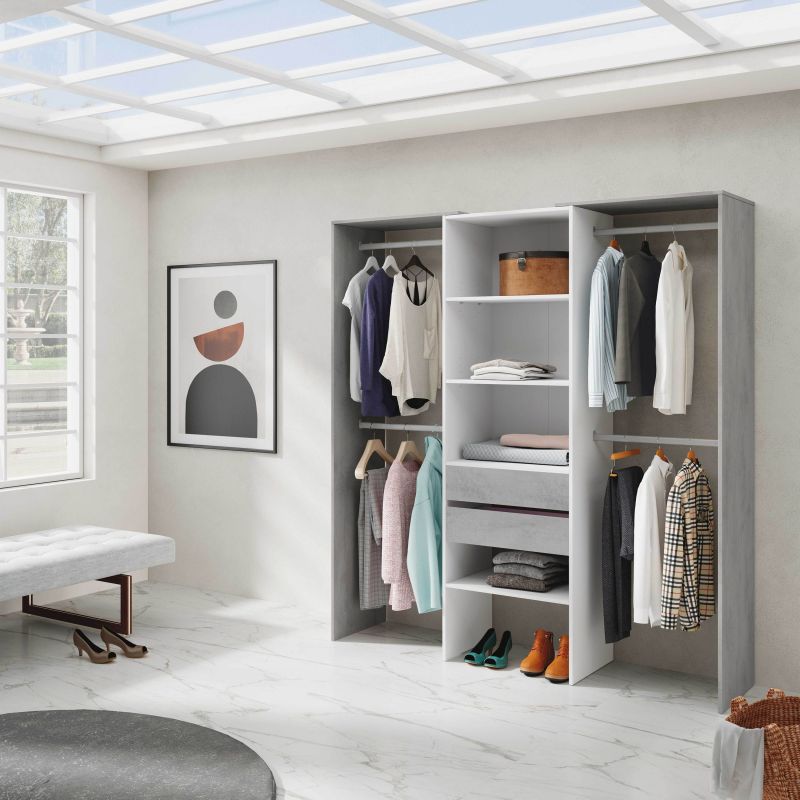 O roupeiro Dress Dress vai ajudá-lo a manter todas as suas roupas organizadas e à vista, combinando os varões suspensos com espaços abertos e gavetas, poderá organizar as suas roupas como preferir, além de ter espaço suficiente para guardar roupas de várias estações.