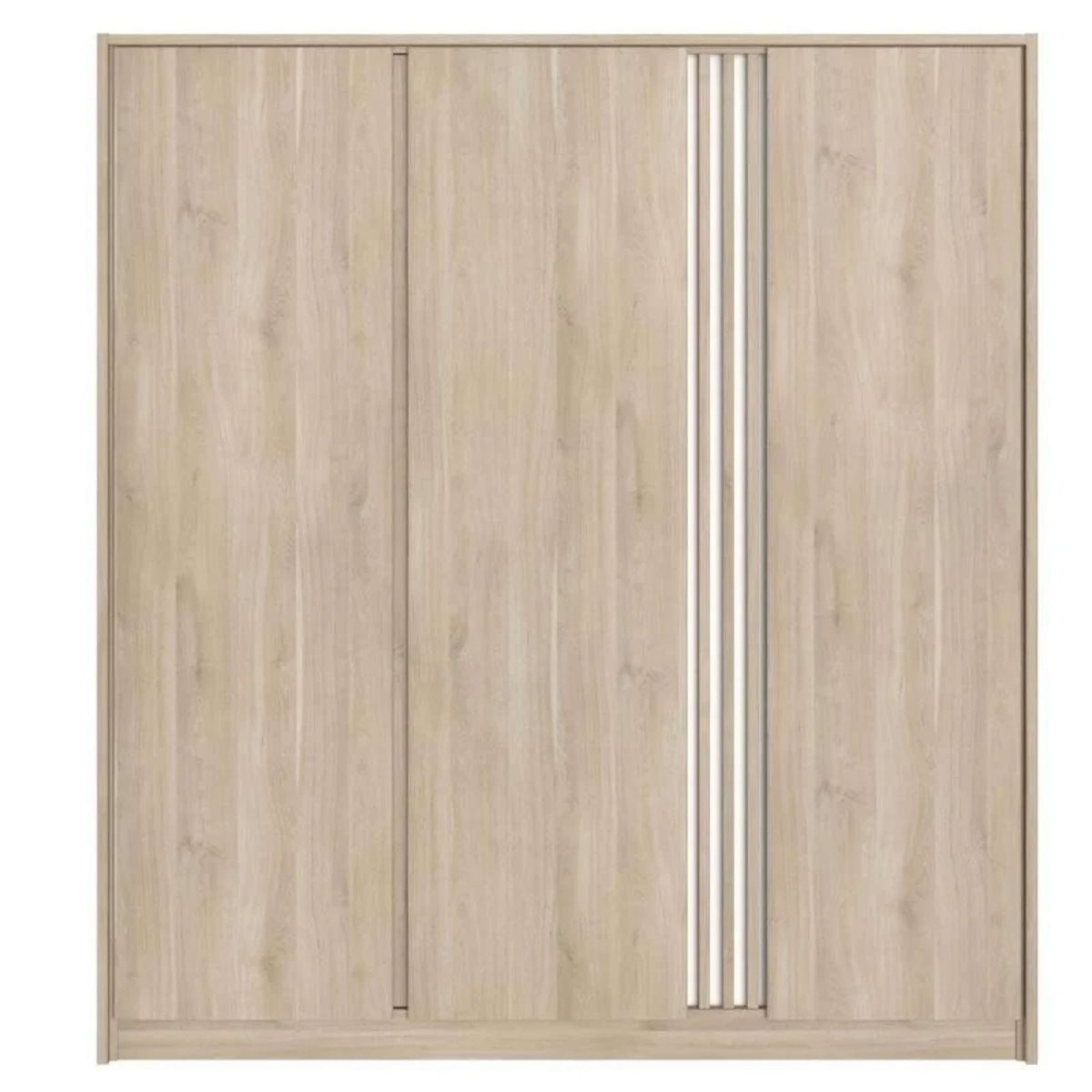 Adicione estilo e funcionalidade ao seu quarto com este guarda-roupa em carvalho japonês. Este móvel minimalista possui três portas sanfonadas. De um lado, possui uma prateleira e um varão para roupas e, do outro, prateleiras para manter suas roupas dobradas com cuidado. Crie um ambiente aconchegante e acolhedor com este amplo guarda-roupa. Feito em melamina e com acabamento em carvalho japonês, ele simula o efeito natural dos veios da madeira. Complete seu quarto com esta maravilhosa peça organizadora. Medidas: Largura 185 cm Altura 202,9 cm Profundidade 52,3 cm. Este móvel acompanha um kit de montagem, que inclui manual de instruções e ferragens.