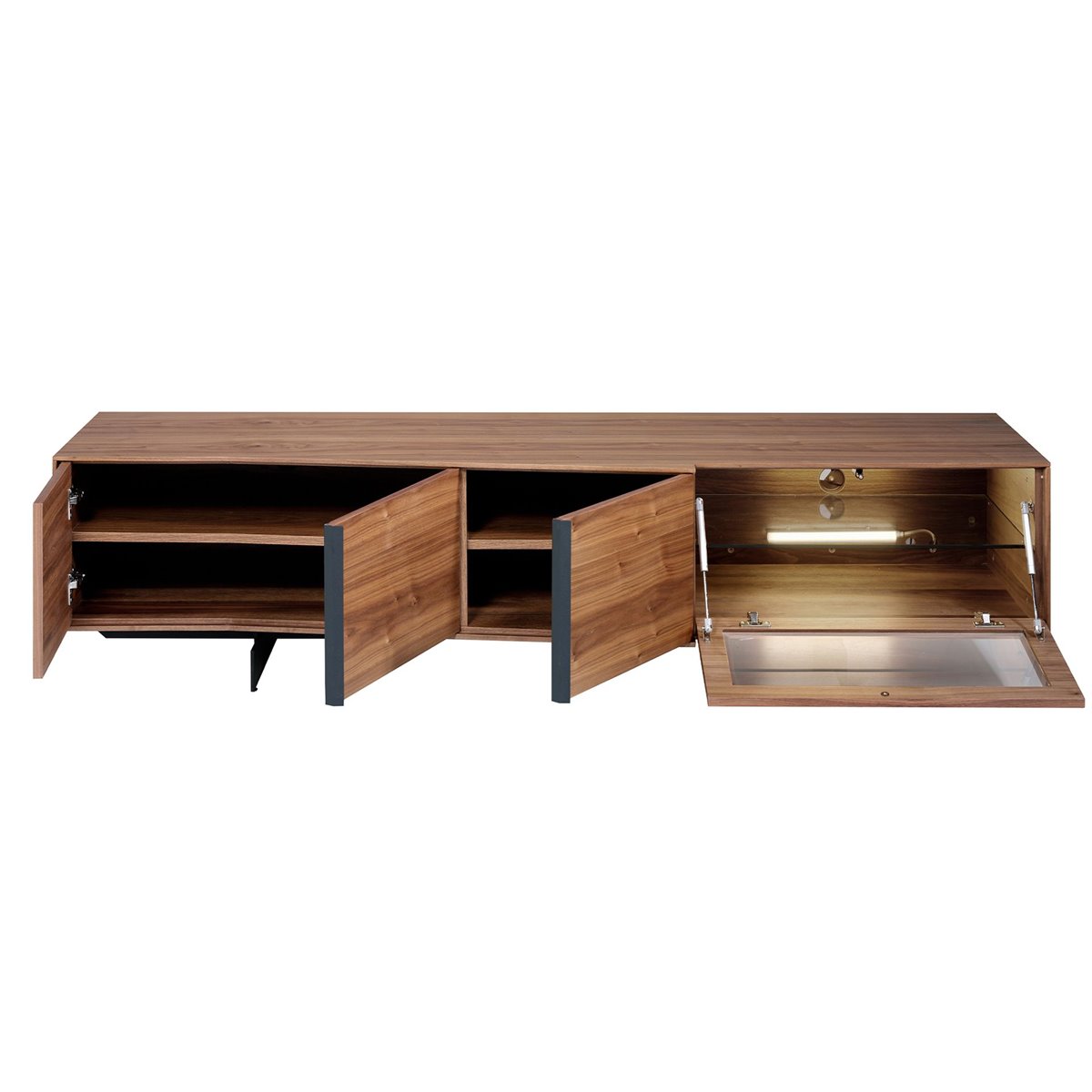 - Um móvel para televisão elegante e sofisticado, fabricado em folha de nogueira natural com 0,5 mm de espessura, que dará à sua sala de estar o toque moderno e acolhedor que procura.