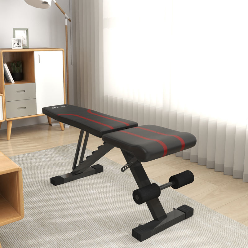 Este banco de exercícios ajustável da SPORTNOW foi concebido para o treino de força em casa ou no ginásio. O banco possui uma estrutura metálica robusta e um encosto almofadado com estofos pretos e detalhes em vermelho. É ajustável em vários ângulos para permitir uma variedade de exercícios, como abdominais, supino ou levantamento de pesos. Inclui também um apoio para as pernas almofadado para estabilidade durante a realização de exercícios abdominais ou de força Características: - Este banco de exercícios ajustável possui um encosto de seis níveis e um assento de quatro níveis para um treino totalmente personalizável - Dobra-se facilmente, permitindo uma arrumação compacta quando não está a ser utilizado - A sua estrutura em aço pintado, com base antiderrapante, suporta até 250 kg de peso - Possui almofadas densamente almofadadas e proteção para os tornozelos em EVA, garantindo um maior conforto durante os exercícios - Vem pronto a utilizar, não sendo necessária qualquer montagem Especificaciones: - Cor: Preto - Material: Aço, EVA e PP - Medidas totais: 82x35x42,5-107 cm (CxLxA) - Medidas dobradas: 35x33x80 cm (CxLxA) - Medidas do assento: 35x33 cm (CxL) - Medidas do encosto: 71x28 cm (CxL) - Ângulo de assento ajustável: 0°, 8°, 16°, 24° - Ângulo do encosto ajustável: 3,3°, 16,3°, 27°, 36,7°, 46,4°, 56° - Carga máxima: 250 kg (com utilizador e halteres) - Referência: A91-383V00BK O pacote inclui: - ● 1 x Banco abdominais; ● 1 x Manual de instruções;