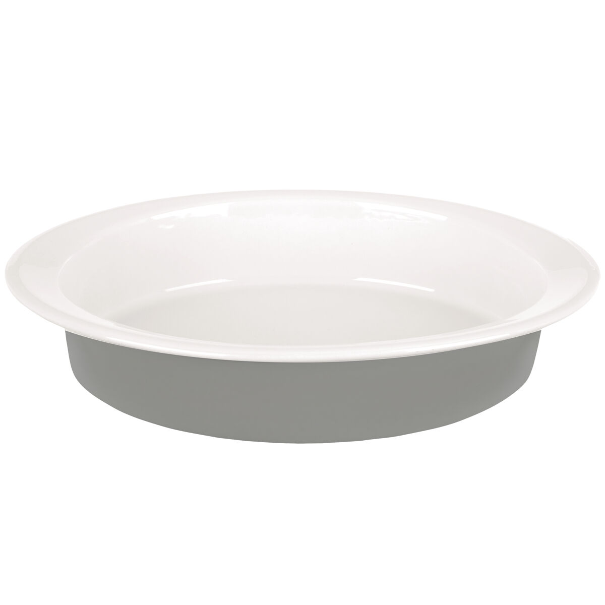 E molde do forno, fabricado em conjuntos de cerâmica, forma oval, com branco cinza fosco e exterior.
