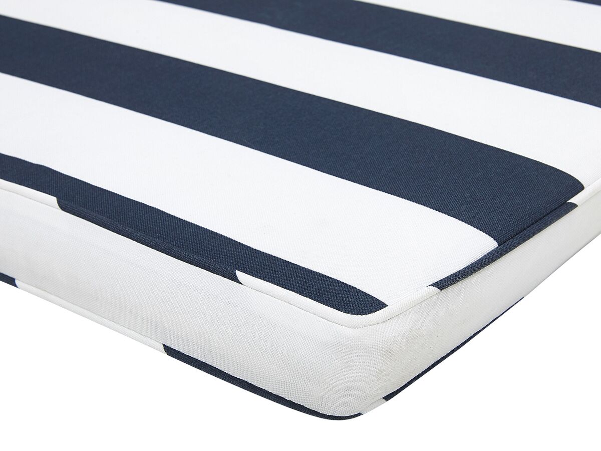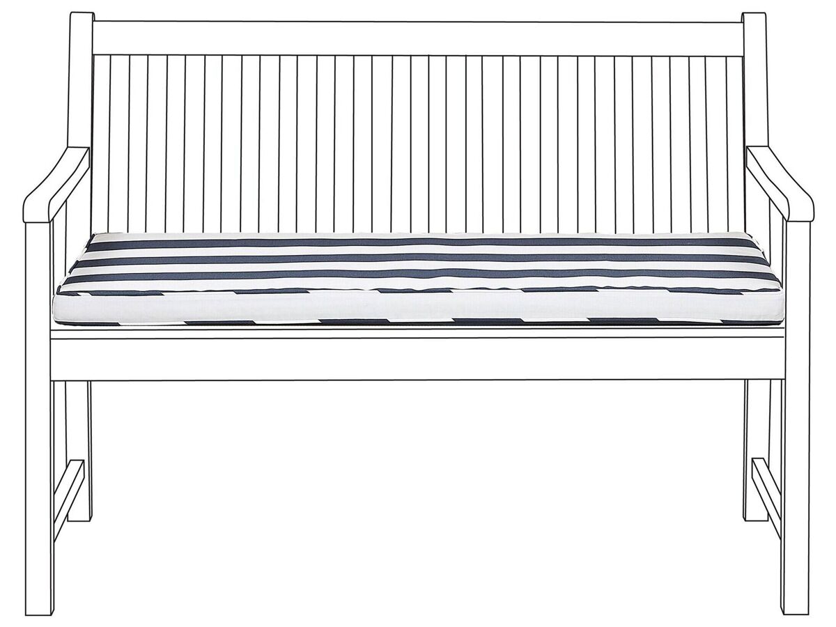 Moderna almofada para banco de jardim com fecho. Renove a aparência do seu banco de jardim e aumente o conforto do assento com esta almofada clássica. Feita de poliéster durável, é resistente aos raios UV e à água, por este motivo mantém a sua aparência por muito tempo. A peça apresenta um enchimento de espuma leve e macia e laços para fácil utilização.