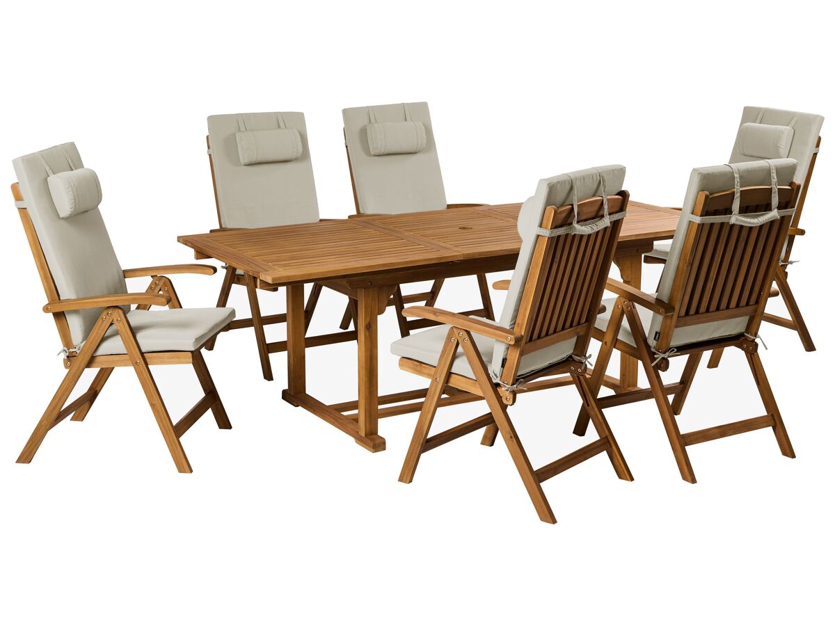 Conjunto de 6 almofadas acolchoadas para cadeira de exterior. Um conjunto de seis almofadas extremamente confortáveis para a sua cadeira de jardim. O tecido de alta qualidade é fácil de cuidar e resistente aos raios UV e à água – as almofadas vão durar muitos anos, mantendo as cores vivas, enquanto adicionam estilo ao seu espaço exterior. As costuras têm um acabamento quase perfeito, sendo praticamente imperceptíveis.