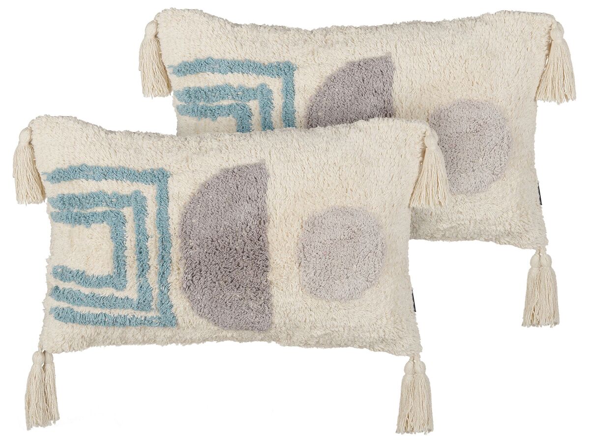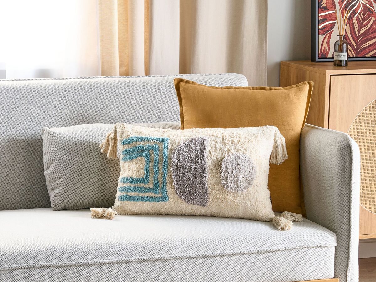 Conjunto de 2 travesseiros de estilo boho . Este conjunto de 2 almofadas retangulares, feitas à mão e adornadas com um padrão abstrato, confere um toque decorativo a qualquer divisão. Concebidas para proporcionar conforto, o seu enchimento macio e grosso proporciona uma sensação aconchegante, graças à sua textura encantadora. As peças são ideais para renovar o visual do seu quarto ou da sua sala de estar. As suas capas removíveis emanam um estilo boho chique, e adicionam uma versatilidade descomplicada à estética da sua casa.