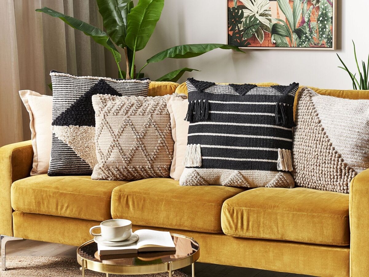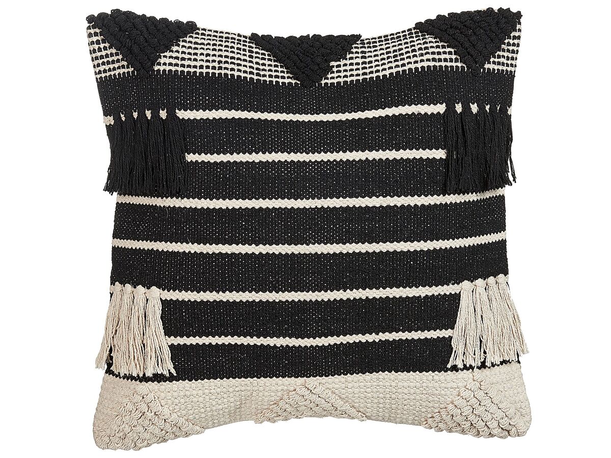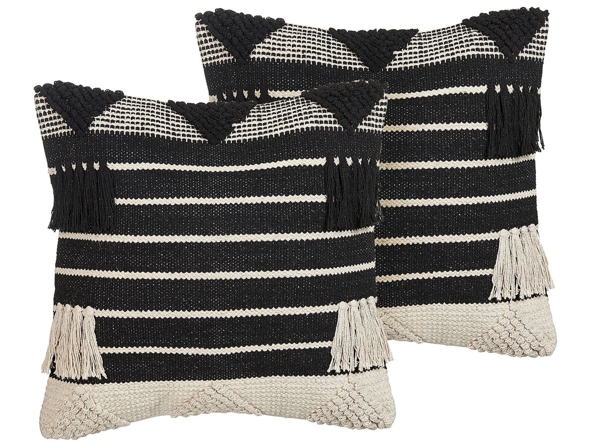 Conjunto de almofadas com franjas decorativas. Eleve o estilo da sua sala de estar ou quarto com este conjunto de almofadas de algodão. O seu design texturizado, conjugado com as franjas decorativas, evoca uma sensação Boho. Com o fecho de correr, pode remover facilmente as capas das almofadas para uma limpeza pontual.