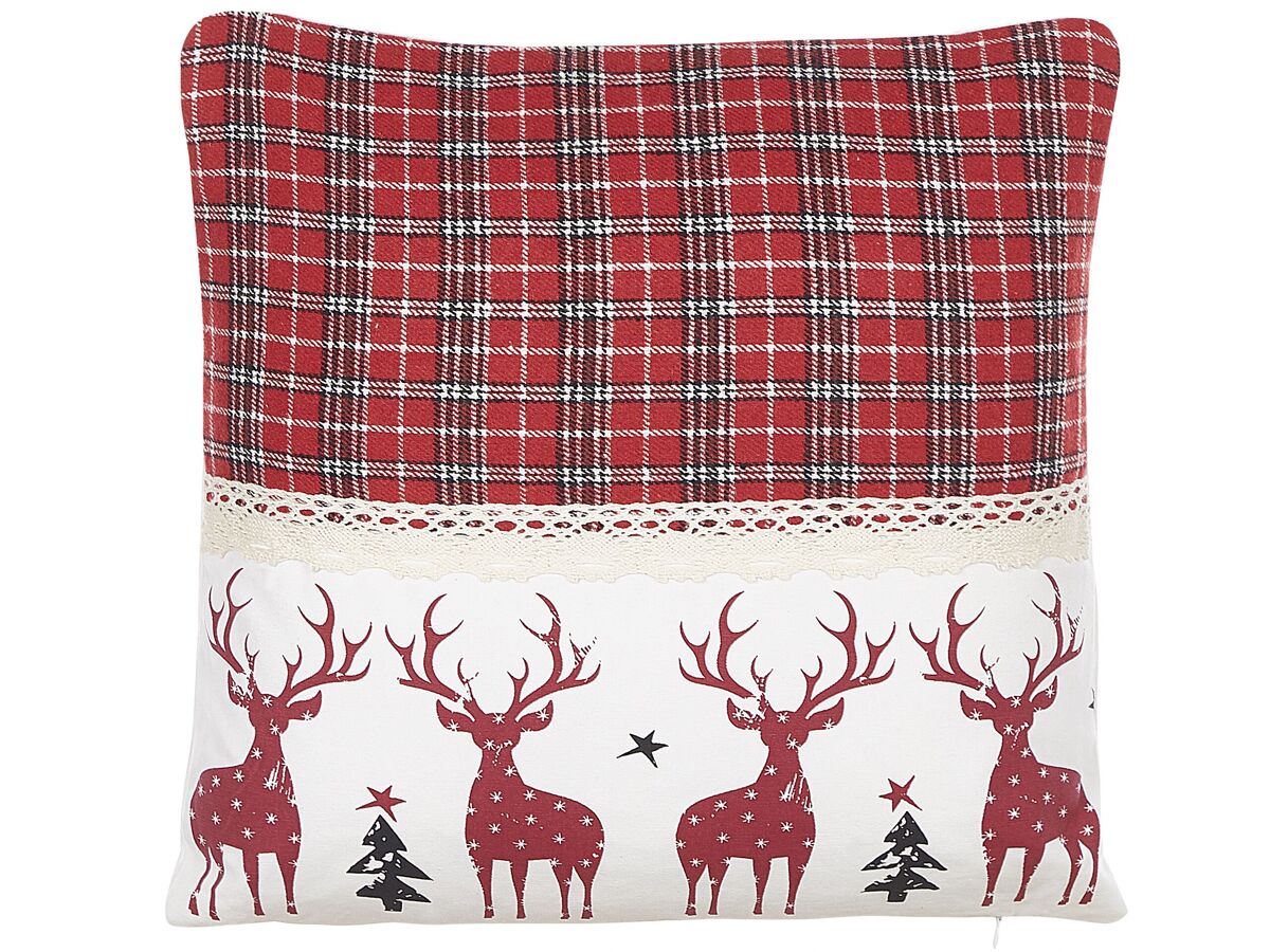 Conjunto de almofadas de natal. Prepare a sua casa para o Natal, adicionando uma infinidade de peças de decoração que evocam o espírito do feriado, como estas duas almofadas maravilhosas. São feitas de poliéster durável e algodão de alta qualidade, e apresentam uma abertura com zíper para fácil limpeza. As capas são adornadas com um xadrez vermelho, combinado com um lindo padrão de árvore e rena. Coloque-as num sofá, poltrona ou cama para trazer o espírito festivo para a sua casa com o mínimo de esforço.