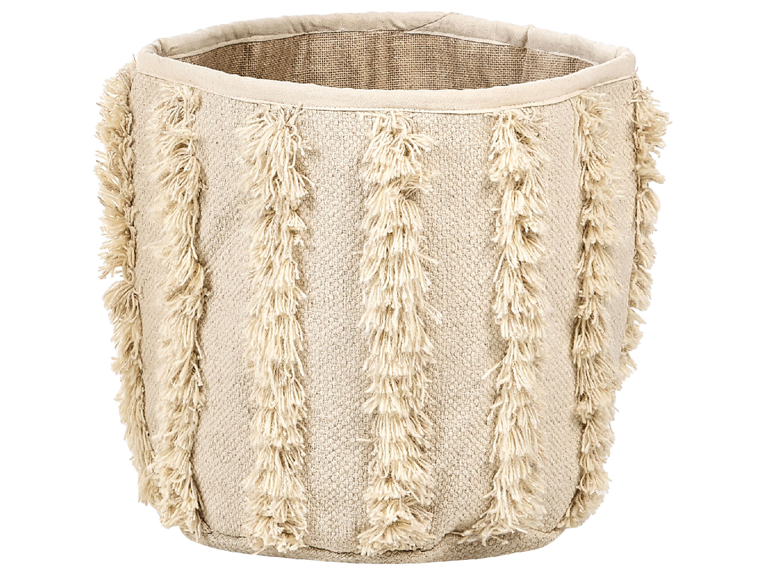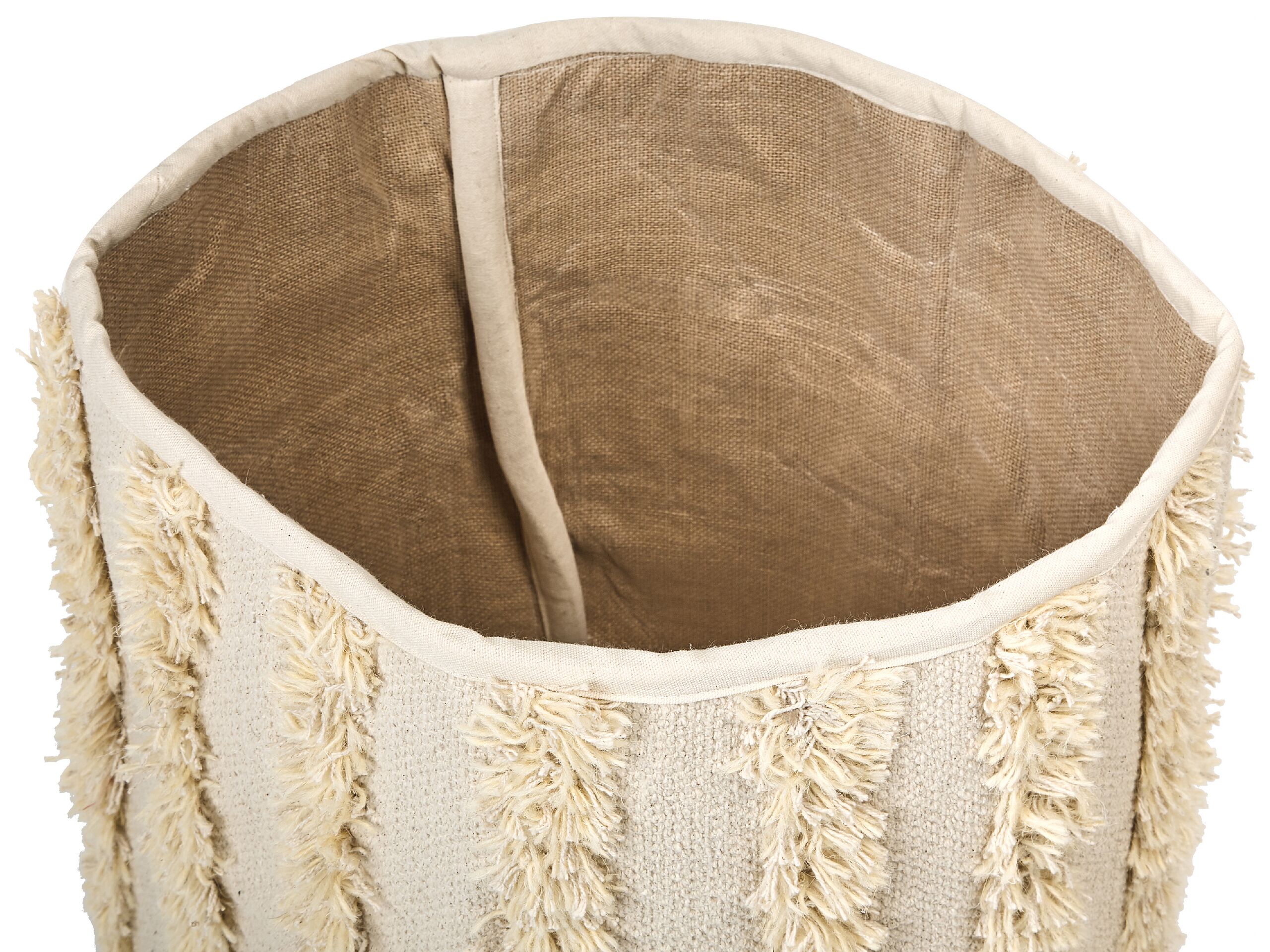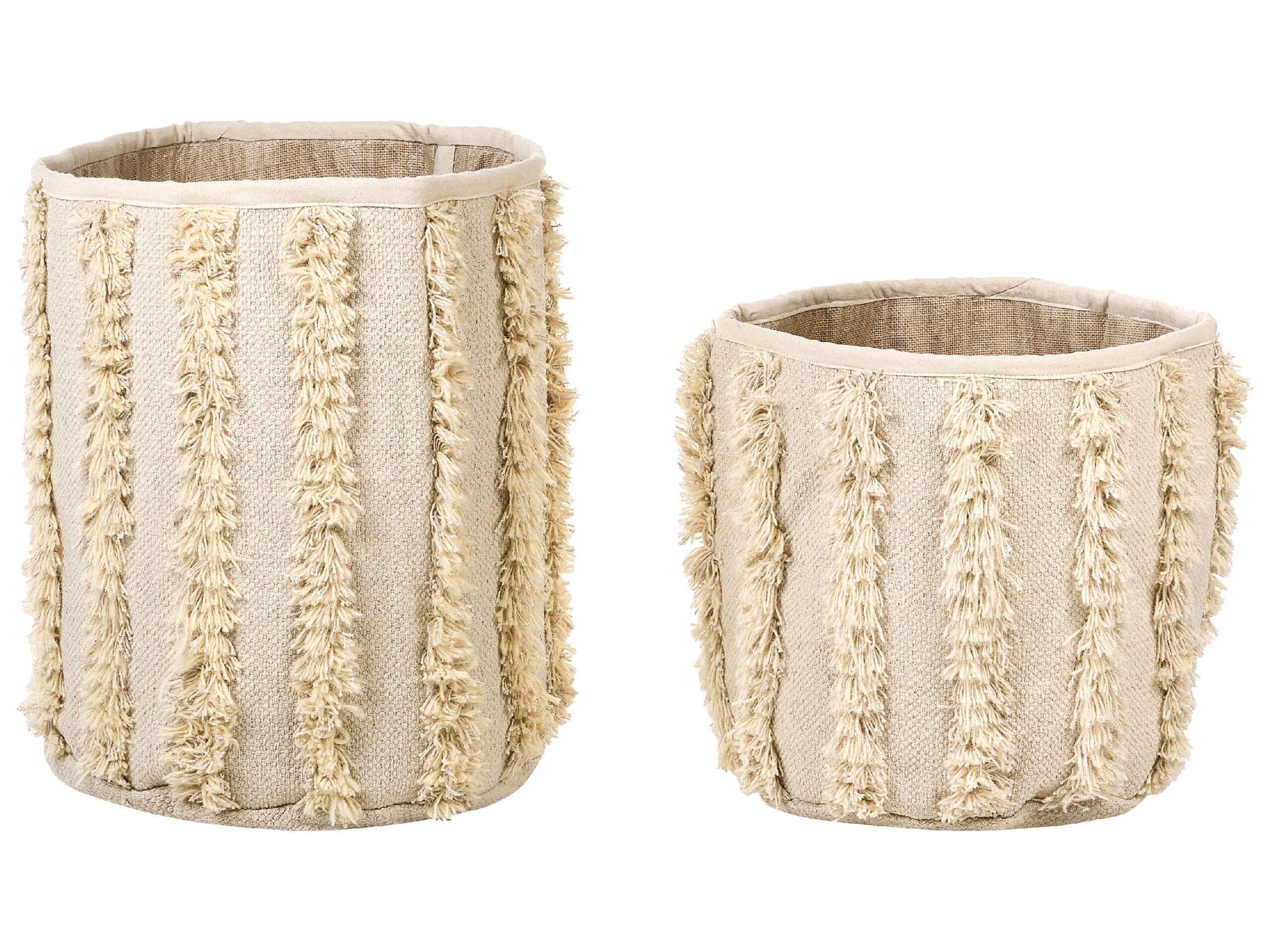 Conjunto de 2 cestos feitos à mão . Proporcione mais funcionalidade à sua sala de estar ou casa de banho, ao mesmo tempo que realça o seu estilo boho, com este conjunto de cestos. Ambas as peças são confecionadas em algodão de alta qualidade, por isso são duráveis e não requerem manutenção diária. As suas laterais são adornadas com franjas decorativas, que captarão atenções, e a sua tonalidade facilita a adaptação a vários estilos de decoração diferentes.
