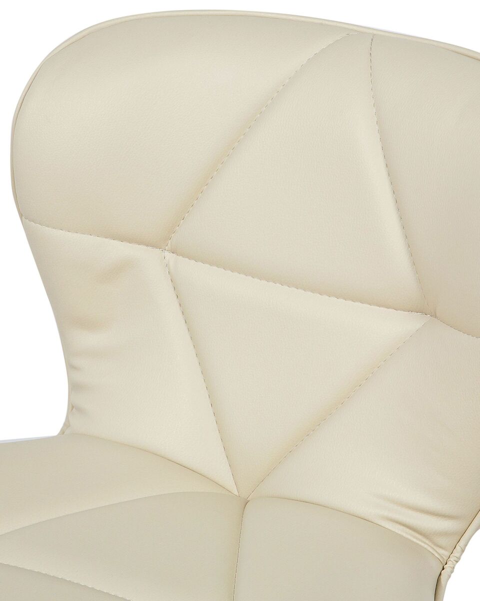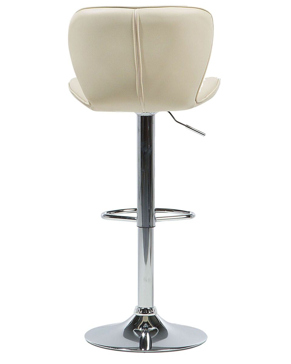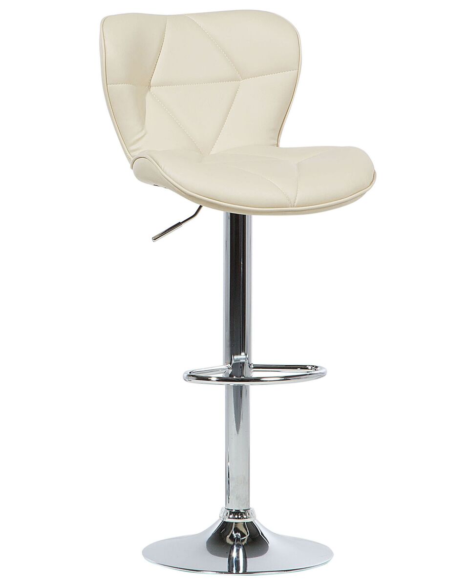 Conjunto de 2 bancos de bar giratórios. Embeleze a sua sala de jantar com este conjunto exclusivo de bancos de bar. O design moderno universal de cada peça torna-a adequada para uma variedade de estilos de decoração e combinações de cores. Graças a uma espessa camada de espuma acolchoada, um assento e costas bem perfilados, os bancos oferecem os mais altos níveis de conforto. As peças possuem um mecanismo giratório que, juntamente com a função de regulação de altura, permite uma acomodação ótima em várias configurações. Detalhes: Tipo de Produto: Tamborete rotativo Estilo: Moderno Cor: Creme Cor da estrutura: Prateado Tom: Creme claro Tipo de Material: Metal Material Principal: Pele sintética Material Adicional: Metal Material dos Pés: Metal Material do Assento: Pele sintética Composição Material: 100% poliéster Apoiador de Braço: Não Empilhável: Não Dimensões: Profundidade: 39 cm Altura do Assento: 59/80 cm Largura: 48 cm Altura: 109 cm Superfície do Assento: 48x38 cm Peso: 8 kg Peso Máximo Suportado: 130 kg A oferta inclui: 2 x Banco de bar Características Principais: Rotação a 360°, Estofos cosidos diagonalmente, Qualidade superior, Ideal para casa ou escritório, Ajuste de altura Informação de Montagem: Apenas os pés. 20-40 min. Informações Adicionais: Para garantir a estabilidade da construção e segurança de uso, recomenda-se verificar se o produto foi montado corretamente 2 semanas após a instalação. Também é recomendado verificar se os parafusos estão devidamente apertados uma vez a cada 3 meses. Dicas de Manutenção: Pele sintética: 1.Uma vez por semana, limpe com um pano húmido e seque após a limpeza. Não lubrifique 2.Use apenas produtos de limpeza e condicionadores suaves dedicados para a pele sintética 3.Limpe com água destilada e use produtos de limpeza à base de sabão em manchas difíceis 4.Por favor, aspire com um acessório adequado. Metal: 1.Para elementos cromados ou cobre, use agente de polimento 2.Para evitar arranhões, não use produtos de limpeza abrasivos 3.Limpe com um detergente suave num pano macio, seque depois.