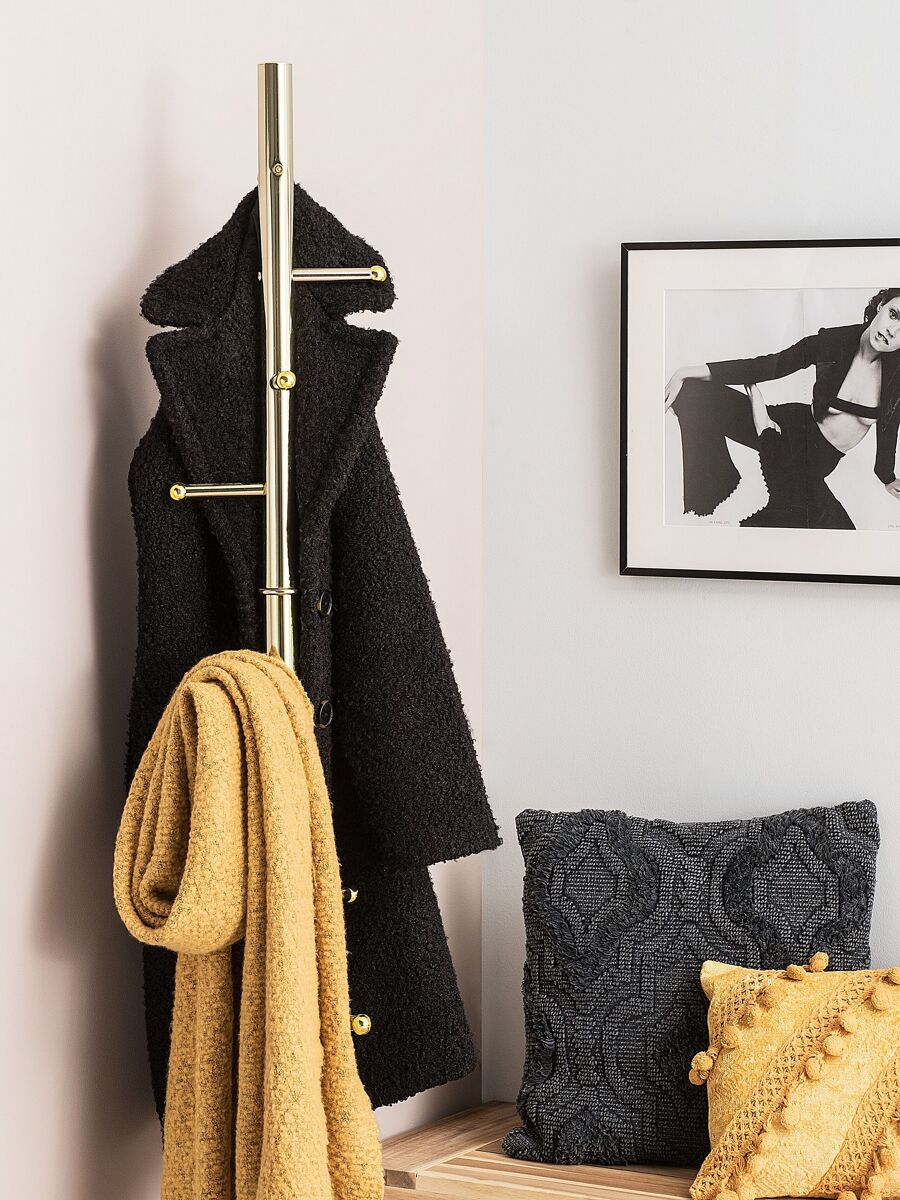 Bengaleiro glamoroso. Este bengaleiro é a solução perfeita para qualquer casa, proporcionando espaço extra para casacos, cachecóis, casacos de malha, etc. Feito de aço durável e com acabamento brilhante, acrescenta um toque de glamour a um corredor.