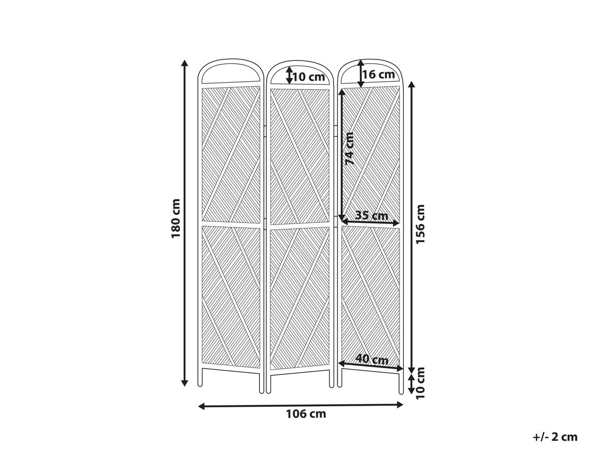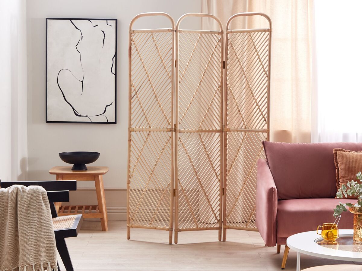 Biombo decorativo e separador de divisões. Este incrível biombo de sala de rattan vem completo com três painéis que pode facilmente dobrar sempre que necessário. Feito de rattan de grande qualidade com painéis decorativos, emite uma vibração fresca e arejada enquanto ainda mantém as coisas separadas. Com a sua forma arredondada ligeiramente chique e retro, este divisor traz um toque de frescura ao seu espaço. É a maneira perfeita de adicionar algumas vibrações relaxantes ao seu quarto e criar um recanto acolhedor para o trabalho ou relaxamento. Detalhes: Tipo de Produto: Biombo dobrável Estilo: Boho Cor: Natural Tipo de Material: Rattan Material Principal: Rattan/vime Acabamento: Melamina Feito à Mão: Sim Dimensões: Profundidade: 3 cm Largura: 106 cm Altura: 180 cm Peso: 7 kg A oferta inclui: 1x Biombo Características Principais: Transporta uma sensação acolhedora para qualquer espaço, Acabamentos precisos e perfeitos, Estrutura concebida para proporcionar estabilidade máxima, Dobrável, para poupar espaço, Material natural Informação de Montagem: Não requer montagem Dicas de Manutenção: Rattan/vime: 1.Limpe apenas com um pano seco. Não use detergentes.