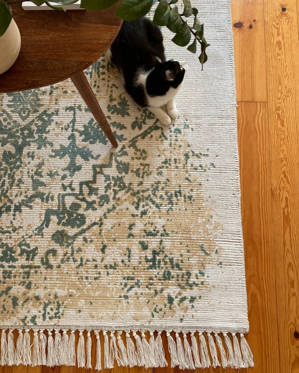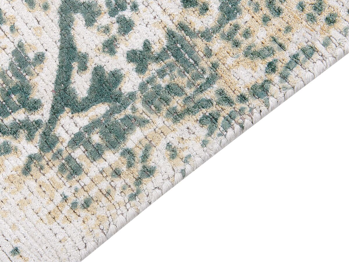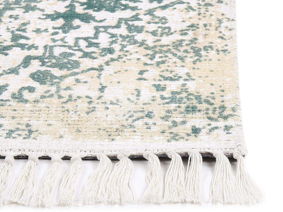 Tapete com padrão oriental. Este tapete dará um toque exótico à sua decoração graças ao seu bonito e vivo padrão oriental. Feito à mão a partir de viscose, é excecionalmente macio e fácil de manter. Além disso, o efeito envelhecido dá ao tapete uma verdadeira sensação de vintage. Coloque-o na sala ou no quarto e desfrute do calor e conforto que a peça proporciona.