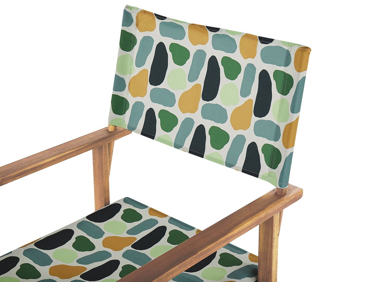 Conjunto de 2 cadeiras de diretor com tecidos de substituição. Quer seja numa sala de estar ou num jardim, este conjunto de 2 cadeiras irá adicionar um ambiente cinematográfico a qualquer ambiente. Feitas a partir de madeira de acácia durável e resistente, as cadeiras apresentam um acabamento natural que lhes confere um aspeto intemporal. O assento e encosto em tecido de cores neutras fazem-nas parecer como se tivessem sido retiradas diretamente de um cenário de filme. As cadeiras podem ser facilmente dobradas, o que permite poupar espaço quando não estão em uso. O conjunto vem com duas capas de lona numa cor sólida e dois tecidos de substituição num padrão geométrico moderno.