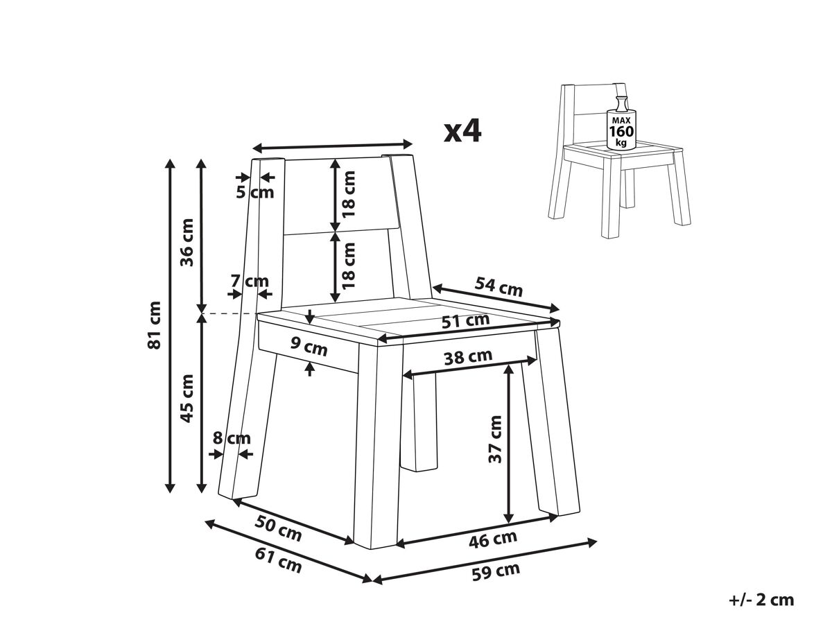 Características Principais: Assento firme e confortável, Design intemporal, O grão e os nós da madeira natural fazem com que cada peça seja única, Materiais de alta qualidade, Adequado para uso interior e exterior, Para preservar a qualidade, deve ser protegido da água e da chuva