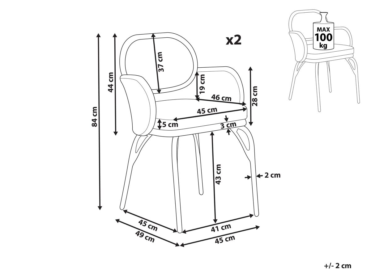 2 x Cadeira, 2 x Almofada de assento