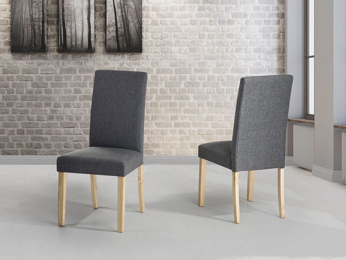 Confortável conjunto de cadeiras de jantar. Graças à cor quente, estas cadeiras criarão uma atmosfera acolhedora em qualquer sala de jantar ou cozinha. Os revestimentos macios e de alta qualidade e as pernas robustas em madeira realçam o design intemporal deste conjunto. Devido ao encosto alto adaptam-se bem a interiores clássicos, bem como a espaços modernos.