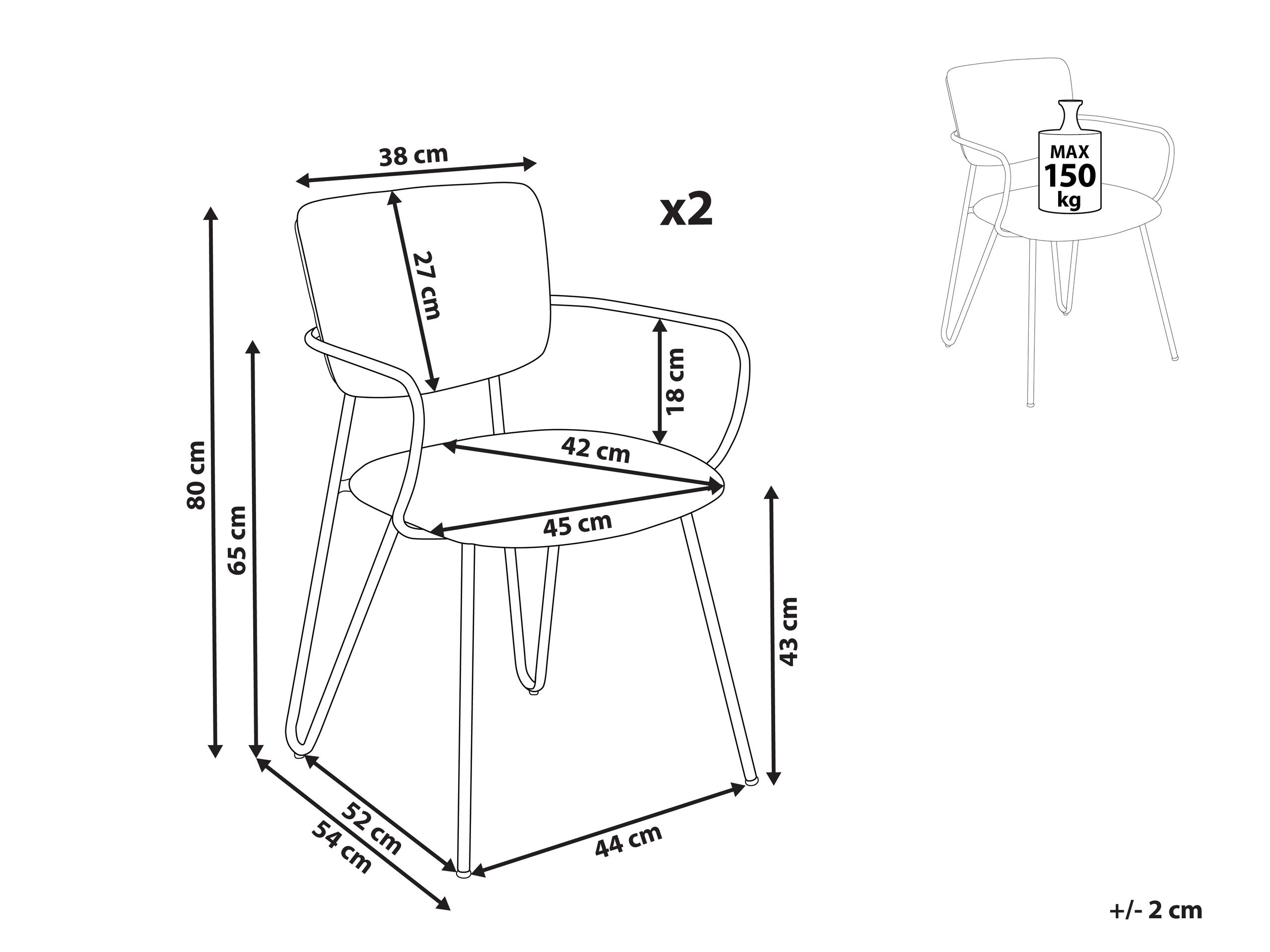 Conjunto de 2 cadeiras de refeição contemporâneas. Graças a estas cadeiras de sala de jantar, todas as suas refeições serão ainda mais saborosas, e você vai sentar-se confortavelmente durante elas. Feitas de poliéster durável, são macias e de baixa manutenção, tornando-as perfeitas para famílias ocupadas. Graças ao seu visual moderno, são uma excelente escolha para interiores contemporâneos, onde a sua estrutura de ferro, combinada com a cor contrastante, se destacará. Detalhes: Tipo de Produto: Cadeira de refeição Estilo: Moderno Cor: Branco Tom: Branco creme Tipo de Material: Tecido Material Principal: Poliéster Material Adicional: Ferro Material dos Pés: Metal Material do Assento: Tecido Composição Material: 100% poliéster Apoiador de Braço: Sim Acabamento: Revestimento em tinta em pó Empilhável: Não Dimensões: Altura das Poltronas: 61 cm Profundidade: 54 cm Grossura do Assento: 6 cm Altura do Assento: 43 cm Largura: 53 cm Altura: 80 cm Superfície do Assento: 42x45 cm Peso: 5 kg Peso Máximo Suportado: 150 kg A oferta inclui: 2 x Cadeira Características Principais: Braços cómodos e perfeitamente ajustados, Superfície do assento ampla e confortável, Design intemporal, Acabamentos de qualidade, Pés com proteções anti-riscos Informação de Montagem: Apenas os pés. 20-40 min. Informações Adicionais: Para garantir a estabilidade da construção e segurança de uso, recomenda-se verificar se o produto foi montado corretamente 2 semanas após a instalação. Também é recomendado verificar se os parafusos estão devidamente apertados uma vez a cada 3 meses. Dicas de Manutenção: Poliéster: 1.Limpe com um shampoo seco e uma esponja húmida ou com um detergente neutro 2.Aspire com um acessório adequado. Ferro: 1.Para evitar arranhões, não use produtos de limpeza abrasivos 2.Limpe com um detergente suave num pano macio, seque depois 3.Para elementos cromados ou cobre, use agente de polimento.