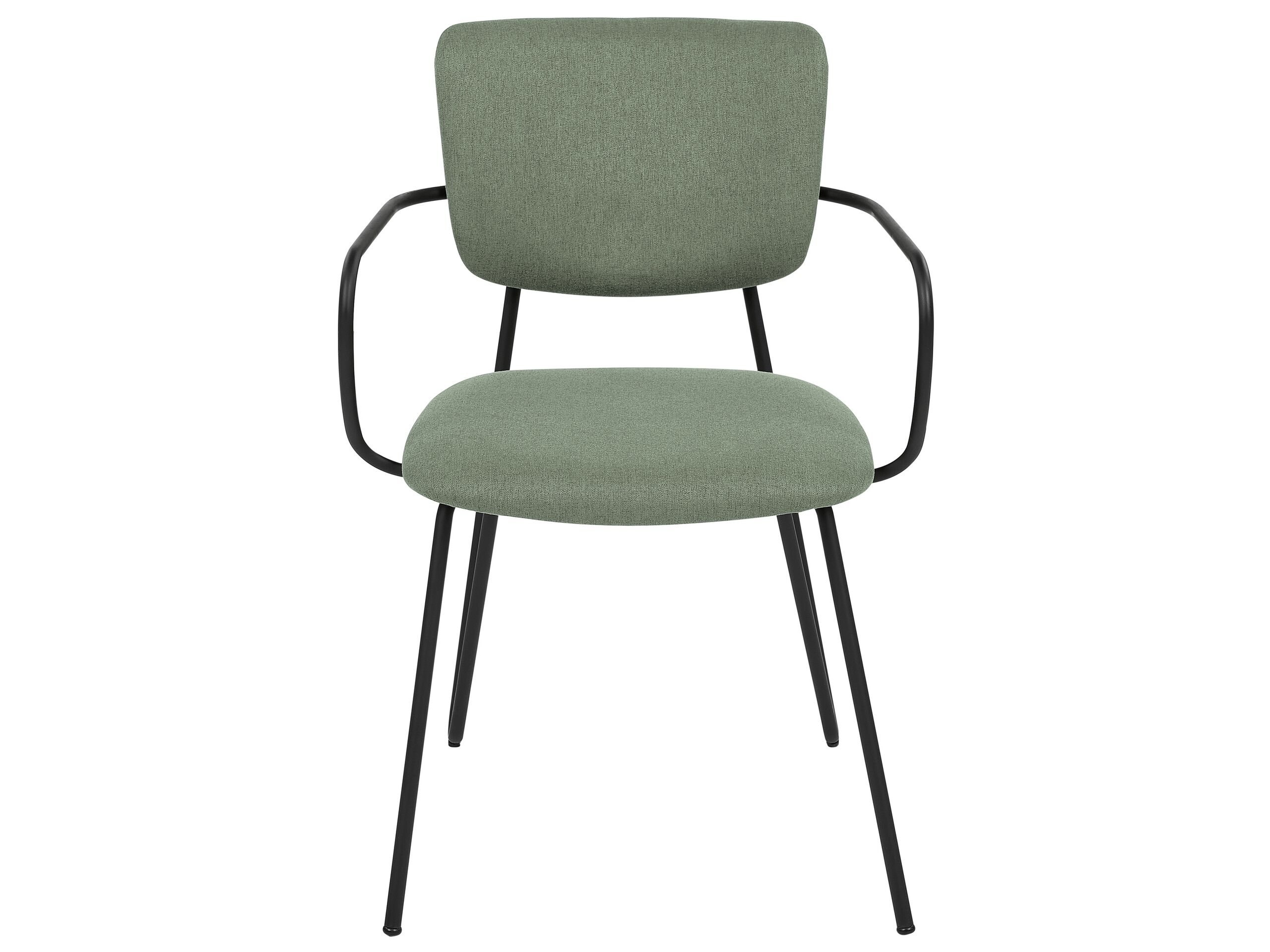 Conjunto de 2 cadeiras de refeição contemporâneas . Graças a estas cadeiras de sala de jantar, todas as suas refeições serão ainda mais saborosas, e você vai sentar-se confortavelmente durante elas. Feitas de poliéster durável, são macias e de baixa manutenção, tornando-as perfeitas para famílias ocupadas. Graças ao seu visual moderno, são uma excelente escolha para interiores contemporâneos, onde a sua estrutura de ferro, combinada com a cor contrastante, se destacará. Detalhes: Tipo de Produto: Cadeira de refeição Estilo: Moderno Cor: Verde Tom: Verde escuro Tipo de Material: Tecido Material Principal: Poliéster Material Adicional: Ferro Material dos Pés: Metal Material do Assento: Tecido Composição Material: 100% poliéster Apoiador de Braço: Sim Acabamento: Revestimento em tinta em pó Empilhável: Não Dimensões: Altura das Poltronas: 61 cm Profundidade: 54 cm Grossura do Assento: 6 cm Altura do Assento: 43 cm Largura: 53 cm Altura: 80 cm Superfície do Assento: 42x45 cm Peso: 5 kg Peso Máximo Suportado: 150 kg A oferta inclui: 2 x Cadeira Características Principais: Braços cómodos e perfeitamente ajustados, Superfície do assento ampla e confortável, Design intemporal, Acabamentos de qualidade, Pés com proteções anti-riscos Informação de Montagem: Apenas os pés. 20-40 min. Informações Adicionais: Para garantir a estabilidade da construção e segurança de uso, recomenda-se verificar se o produto foi montado corretamente 2 semanas após a instalação. Também é recomendado verificar se os parafusos estão devidamente apertados uma vez a cada 3 meses. Dicas de Manutenção: Poliéster: 1.Limpe com um shampoo seco e uma esponja húmida ou com um detergente neutro 2.Aspire com um acessório adequado. Ferro: 1.Limpe com um detergente suave num pano macio, seque depois 2.Para elementos cromados ou cobre, use agente de polimento 3.Para evitar arranhões, não use produtos de limpeza abrasivos.