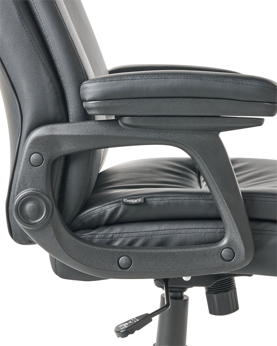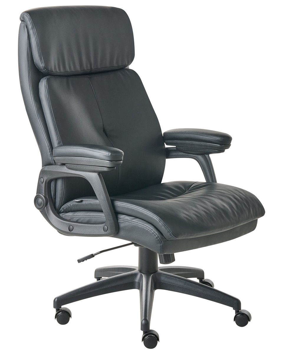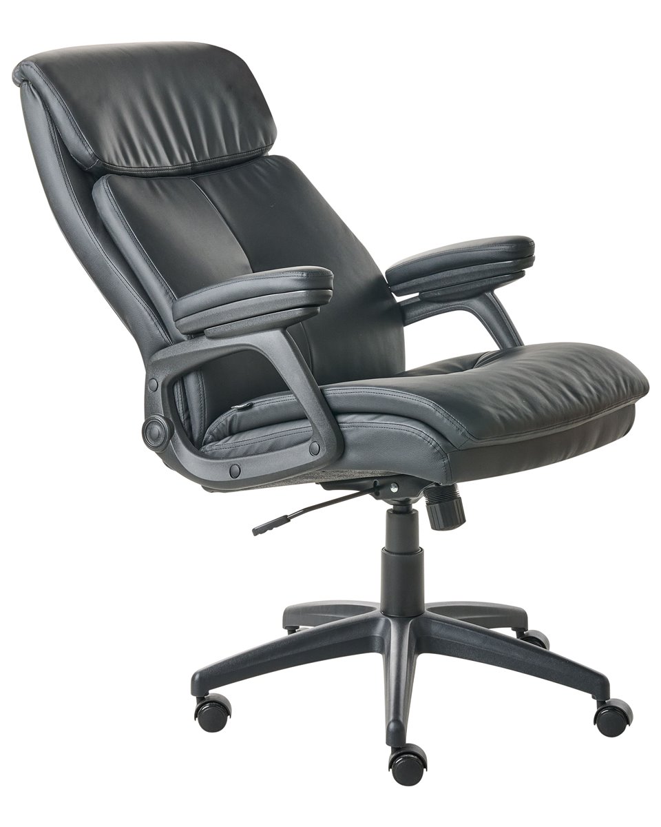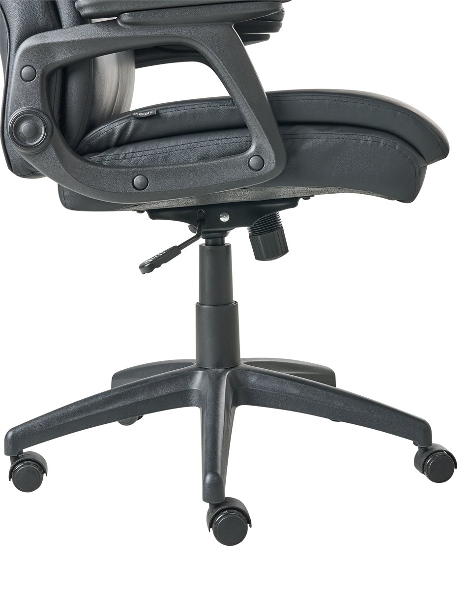 Cadeira de escritório com encosto alto e almofadado. Melhore o seu espaço de trabalho com esta cadeira executiva, desenhada para lhe proporcionar o máximo conforto diário e suporte profissional. O encosto ajuda a alinhar corretamente a sua coluna, promovendo uma melhor postura e reduzindo a tensão causada por longas horas sentado. O acolchoamento espesso é generosamente distribuído por toda a cadeira, incluindo uma borda de assento em cascata que alivia a pressão e promove a circulação sanguínea nos membros inferiores. O suporte lombar integrado melhora o alinhamento ergonómico, enquanto os apoios de braço acolchoados oferecem conforto adicional. Use a alavanca sob o assento para ajustar a altura ou ativar a função de inclinação, que lhe possibilita movimentos dinâmicos ou uma posição vertical fixa. Estofada em pele sintética, a cadeira possui um aspeto de alta de qualidade, adequando-se tanto a espaços domésticos como executivos. Detalhes: Tipo de Produto: Cadeira executiva Estilo: Tradicional Cor: Preto Tipo de Material: Pele sintética Material Principal: Pele sintética Material Adicional: Nylon Material dos Pés: Material sintético Material do Assento: Pele sintética Composição Material: 100% pele sintética Giro 360: Sim Partes Ajustáveis: Altura do assento Apoiador de Braço: Sim Protetores para os Pés: Não Inclinação: Sim Dimensões: Altura das Poltronas: 20 cm Profundidade: 66 cm Altura do Assento: 40-50 cm Largura: 66 cm Altura: 117-126 cm Superfície do Assento: 55x52 cm Peso: 15 kg Peso Máximo Suportado: 150 kg A oferta inclui: 1 x Cadeira de escritório Características Principais: Rodas giratórias com travões de segurança, Rotação a 360°, Mecanismo de inclinação permite um ajustamento perfeito, Assento ajustável via sistema de molas pneumáticas, Apoios de braços almofadados para um maior conforto dos antebraços e cotovelos, Encosto e apoio de braços concebidos para proporcionar um suporte ideal do corpo, Acolchoado espesso proporciona um conforto ideal, Formato ergonómico, Acolchoado de qualidade superior Informação de Montagem: Necessita de montagem completa. 20-40 min. Dicas de Manutenção: Pele sintética: 1.Limpe com um shampoo seco e uma esponja húmida ou com um detergente neutro 2.Aspire com um acessório adequado. Material sintético: 1.Use apenas detergentes neutros e panos macios, seque depois.