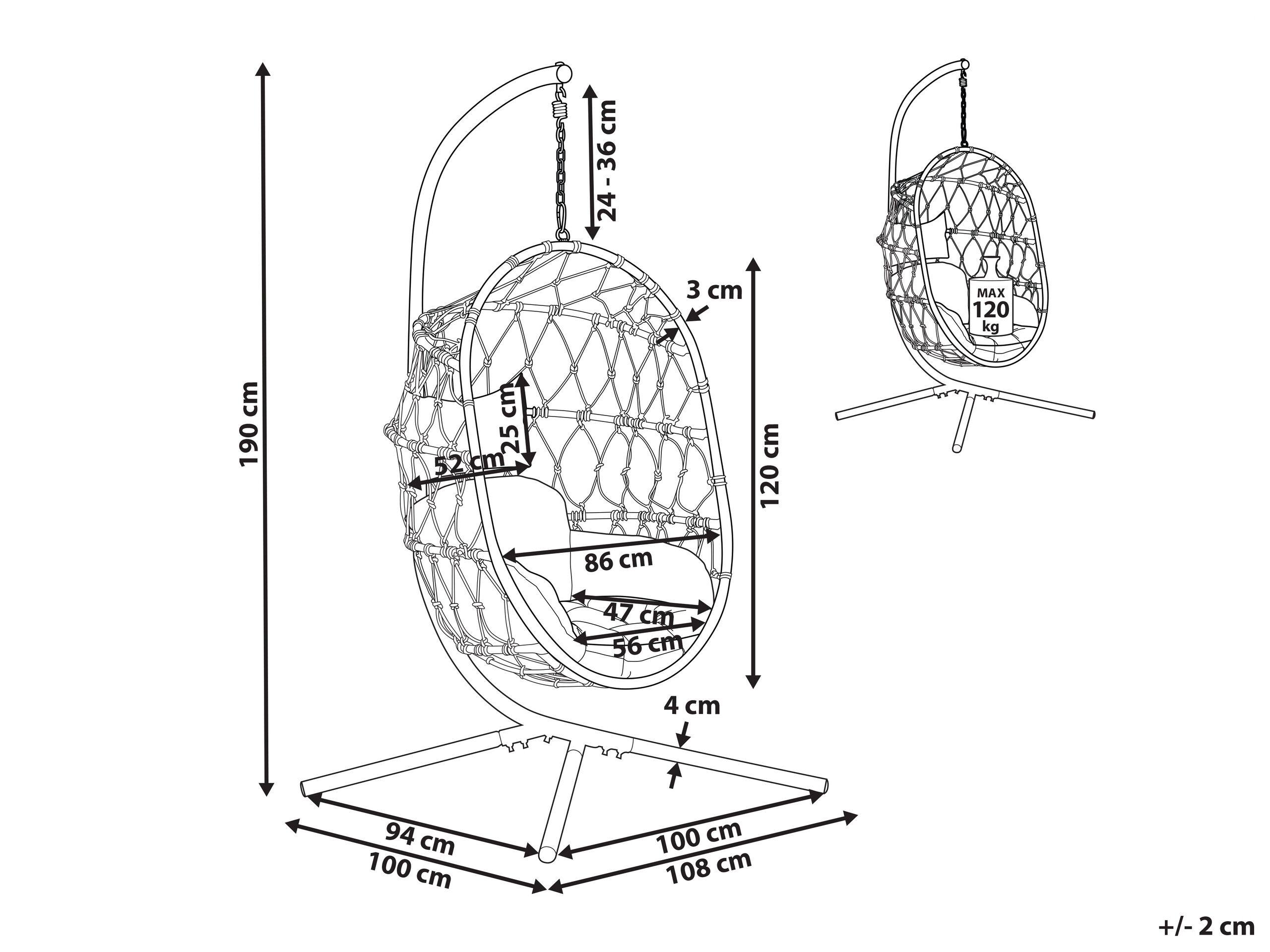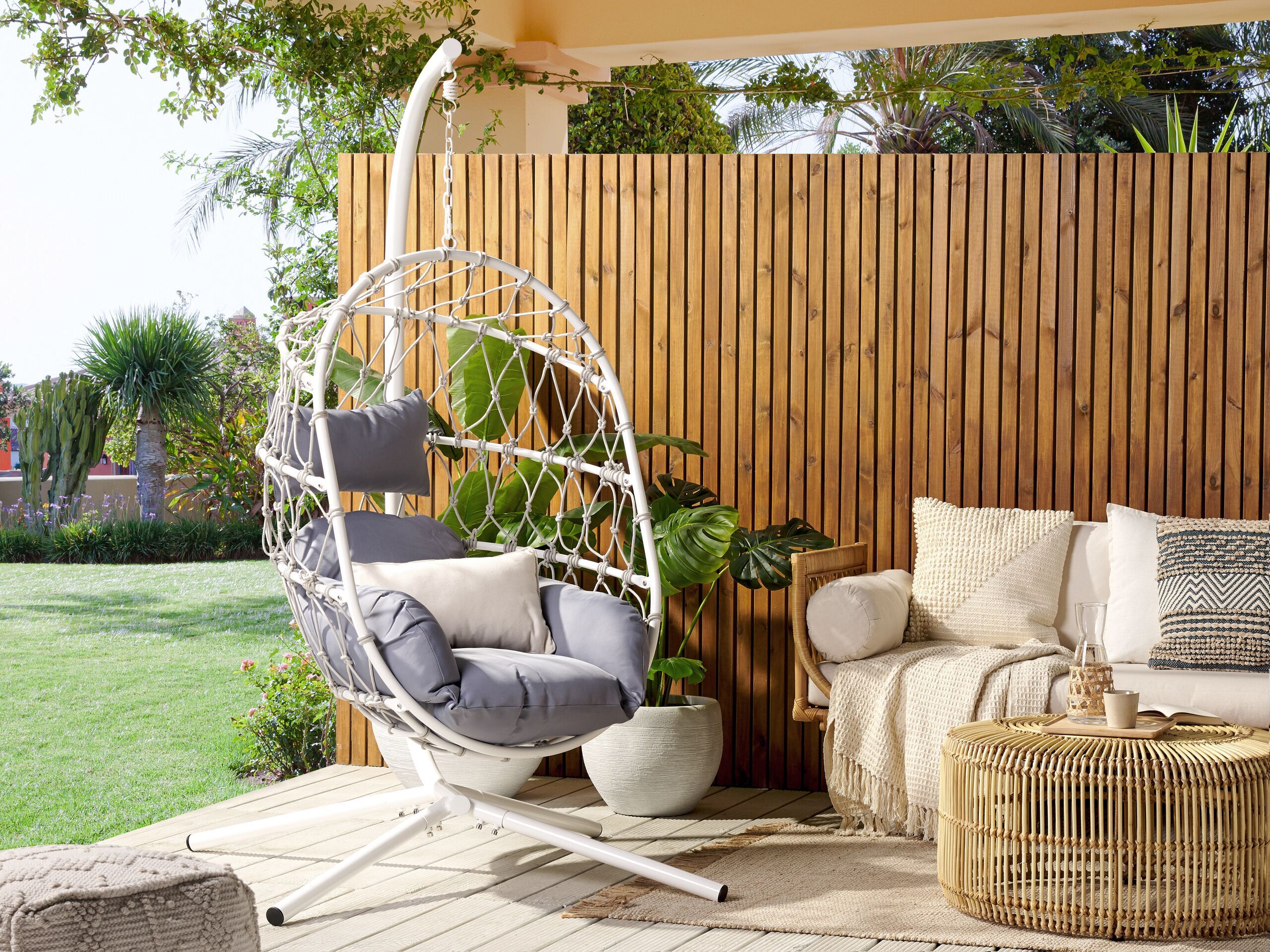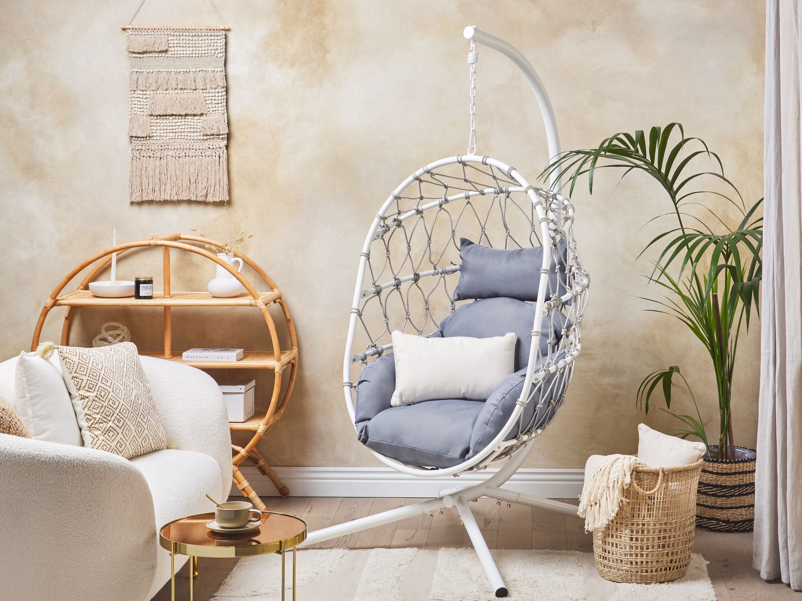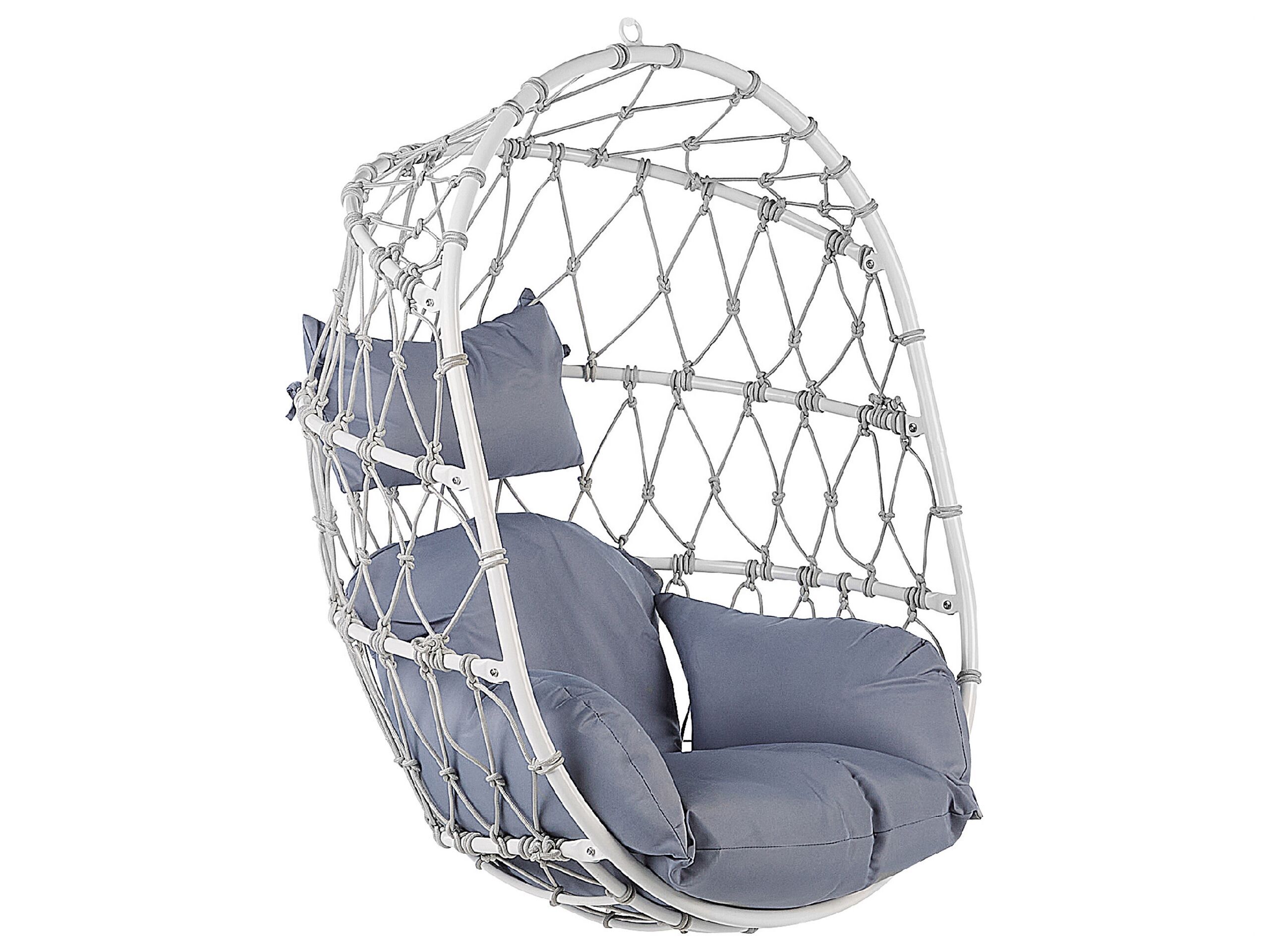 Cadeira de baloiço em forma de ovo com almofada. Ofereça-se um local para relaxar, onde possa desfrutar confortavelmente de um novo livro com uma chávena de chá da tarde. Esta cadeira suspensa, que graças à tecelagem elegante dos assentos e a uma forma minimalista, pode ser uma boa adição a vários designs de interiores. Além disso, graças ao acabamento de projeção térmica que aumenta a resistência e durabilidade dos materiais utilizados, pode colocar este mobiliário não só na sua sala ou quarto, mas também na varanda, terraço ou jardim. O suave movimento de baloiço da peça e as almofadas recheadas ajudarão a relaxar após um dia longo.