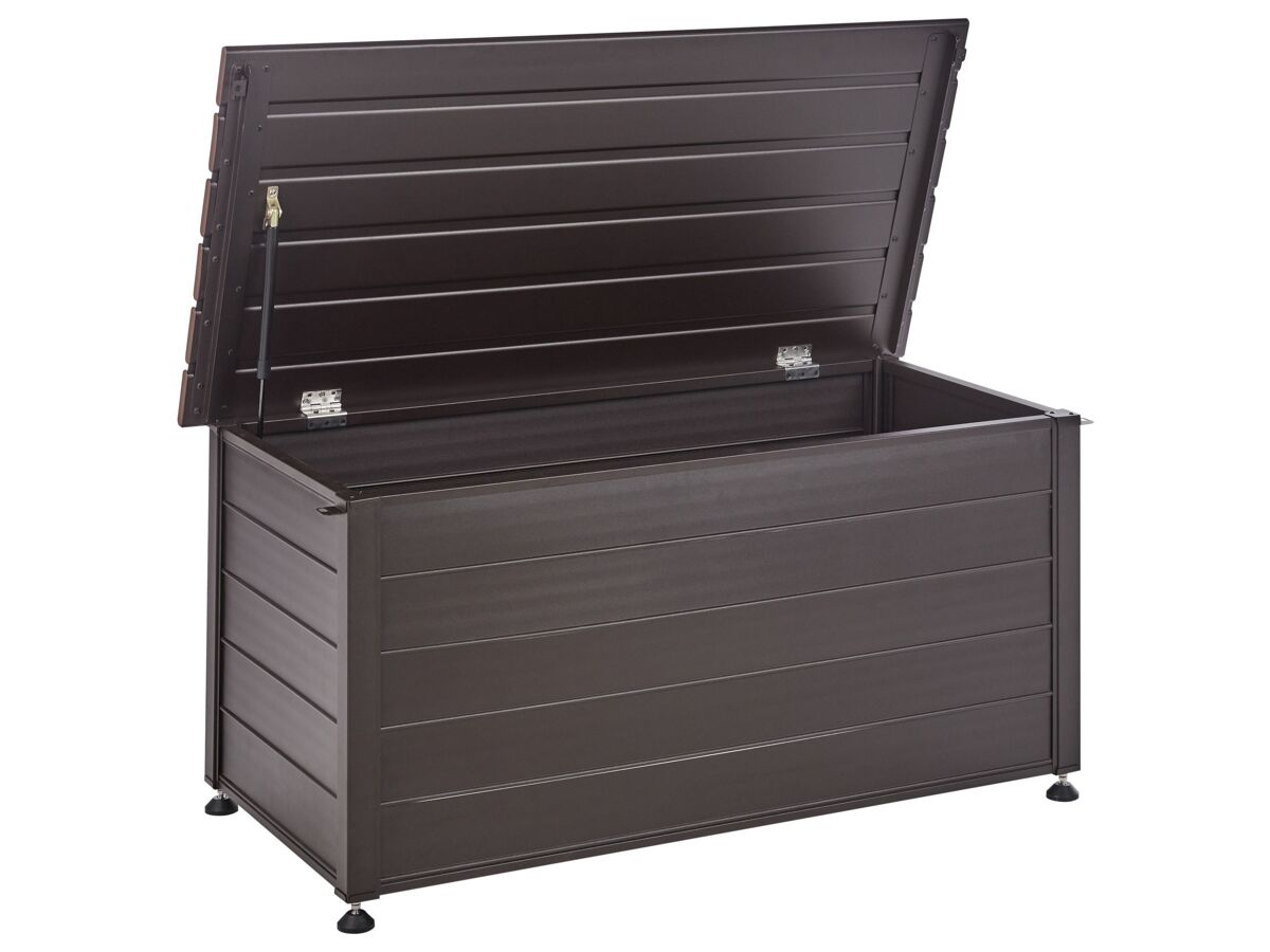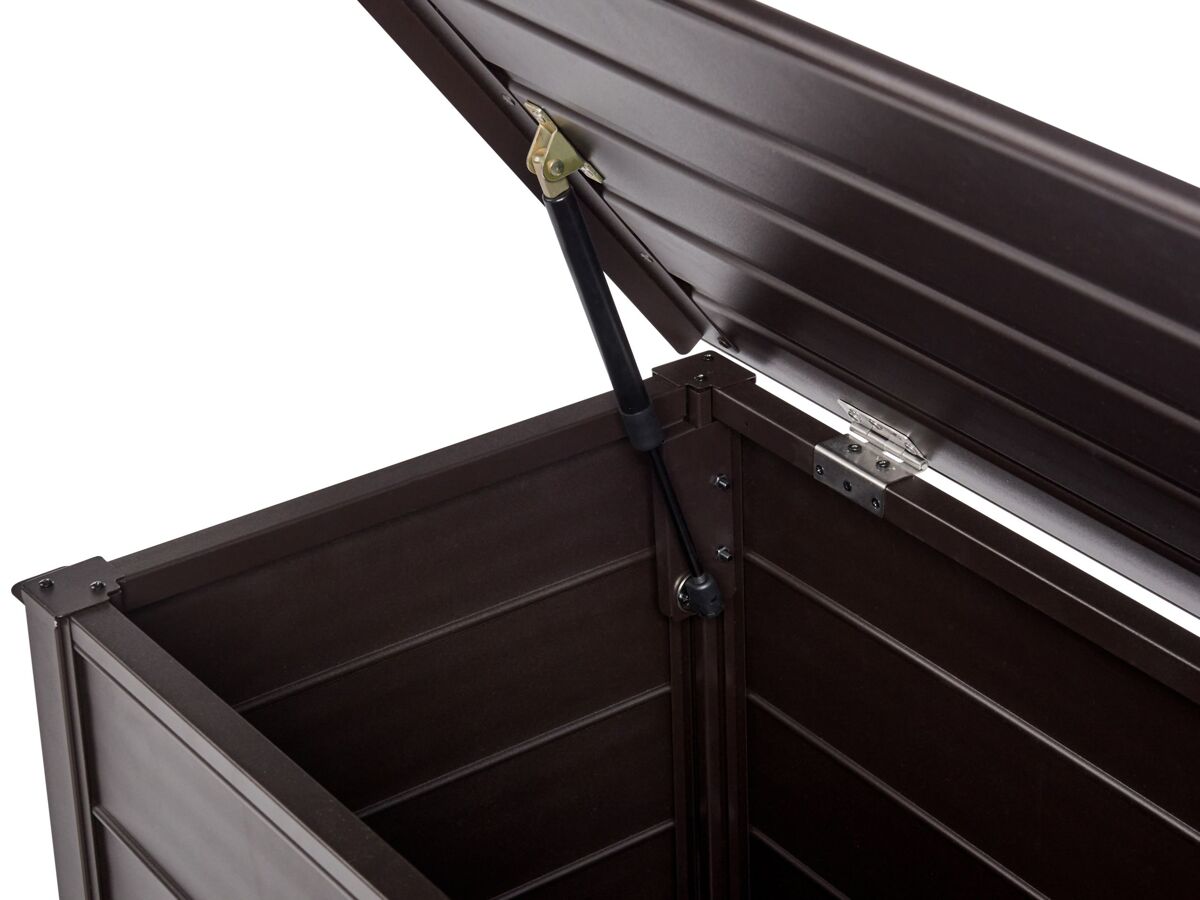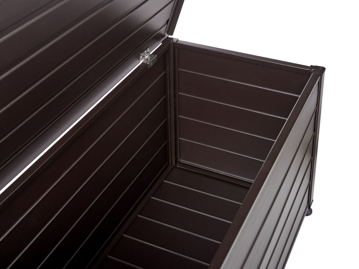 Caixa de armazenamento para exterior. Esta caixa de arrumação para exterior é perfeita para o seu jardim ou pátio. Fabricada em alumínio robusto, foi concebida para resistir à água e ao vento. Espaçosa e com acabamento numa cor clássica, esta caixa pode conter uma variedade de equipamentos, ferramentas e acessórios, complementando muitos ambientes exteriores. Detalhes: Tipo de Produto: Baú de arrumação Estilo: Moderno Cor: Castanho Tom: Castanho escuro Tipo de Material: Metal Material Principal: Alumínio Acabamento: Revestimento em tinta em pó Capacidade: 330 Dimensões: Profundidade: 60 cm Largura: 123 cm Altura: 60 cm Peso: 16 kg A oferta inclui: 1 x Caixa de arrumação para jardim Características Principais: O complemento ideal para o jardim, Design clássico, Materiais de qualidade superior, Durabilidade prolongada, Espaço de arrumação funcional Informação de Montagem: Necessita de montagem completa. 60-90 min. Texto de Resistência: Este produto é resistente à água, o que significa que não se danificará quando exposto à chuva ou em contato com outros líquidos. Resistência: Água Dicas de Manutenção: Alumínio: 1.Limpe com água e detergente suave disponível no mercado. Retire o pó com um pano macio 2.Fora da temporada use uma capa protetora ou guarde os móveis em local fresco e seco.