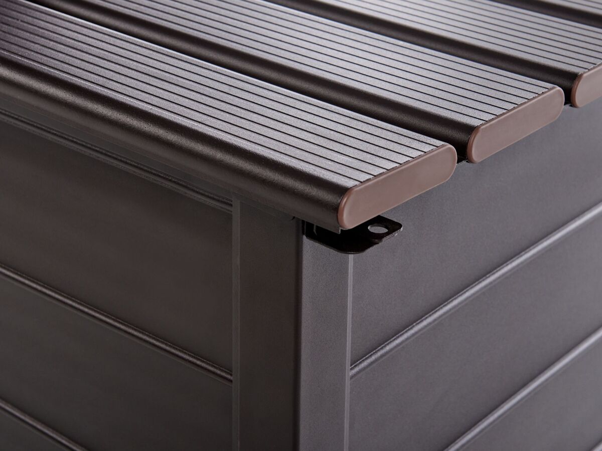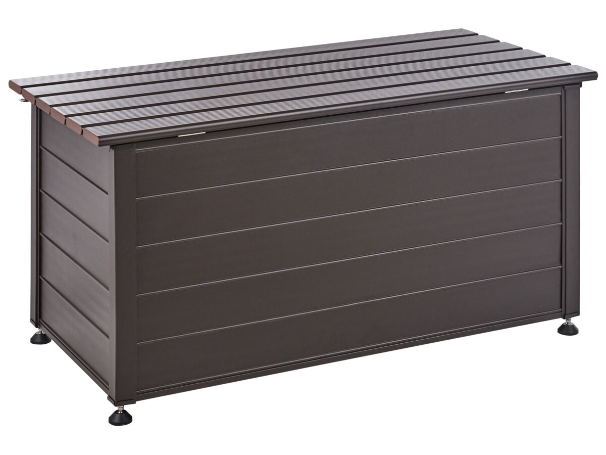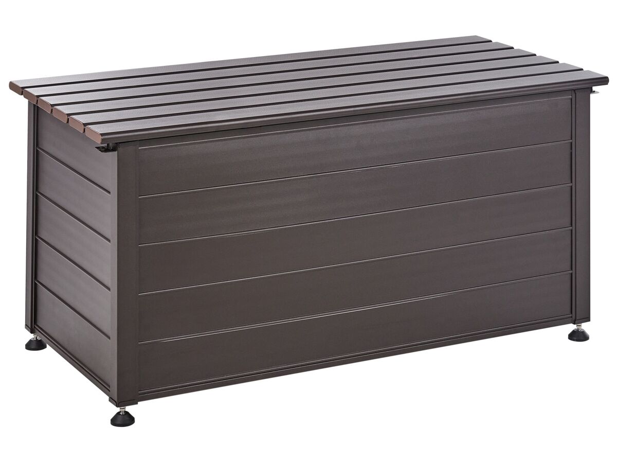 Caixa de armazenamento para exterior. Esta caixa de arrumação para exterior é perfeita para o seu jardim ou pátio. Fabricada em alumínio robusto, foi concebida para resistir à água e ao vento. Espaçosa e com acabamento numa cor clássica, esta caixa pode conter uma variedade de equipamentos, ferramentas e acessórios, complementando muitos ambientes exteriores. Detalhes: Tipo de Produto: Baú de arrumação Estilo: Moderno Cor: Castanho Tom: Castanho escuro Tipo de Material: Metal Material Principal: Alumínio Acabamento: Revestimento em tinta em pó Capacidade: 330 Dimensões: Profundidade: 60 cm Largura: 123 cm Altura: 60 cm Peso: 16 kg A oferta inclui: 1 x Caixa de arrumação para jardim Características Principais: O complemento ideal para o jardim, Design clássico, Materiais de qualidade superior, Durabilidade prolongada, Espaço de arrumação funcional Informação de Montagem: Necessita de montagem completa. 60-90 min. Texto de Resistência: Este produto é resistente à água, o que significa que não se danificará quando exposto à chuva ou em contato com outros líquidos. Resistência: Água Dicas de Manutenção: Alumínio: 1.Limpe com água e detergente suave disponível no mercado. Retire o pó com um pano macio 2.Fora da temporada use uma capa protetora ou guarde os móveis em local fresco e seco.