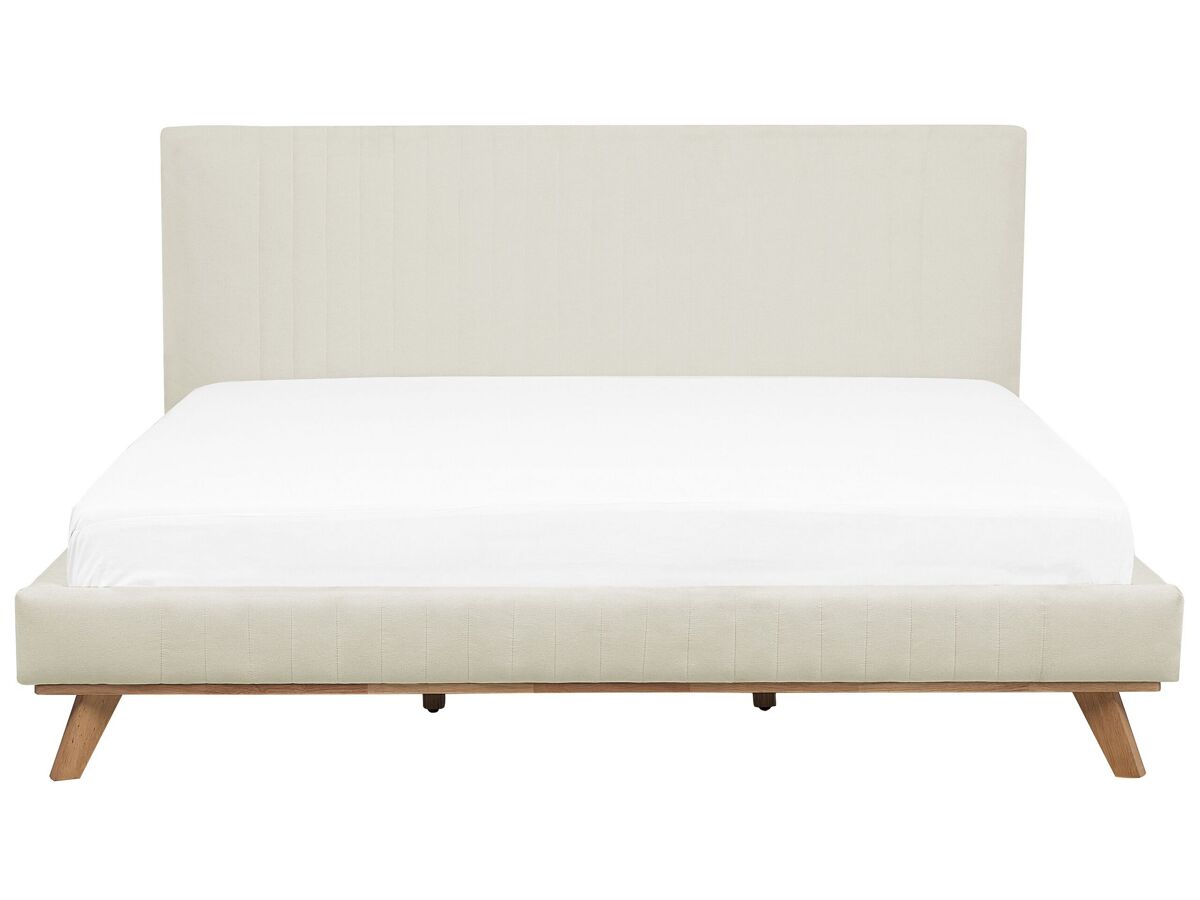 Cama de casal de design moderno. Dê ao seu quarto principal uma sensação acolhedora com esta cama estofada em chenille num elegante tom. É construída com um cabeceira alta generosamente acolchoada para que possa apoiar-se confortavelmente nela para a leitura antes de dormir. As pernas inclinadas de madeira e a estrutura de ripas são feitas de madeira de seringueira, proporcionando suporte firme para o colchão. Completada com um elegante acolchoado de canais, esta cama certamente elevará o visual de qualquer quarto moderno.