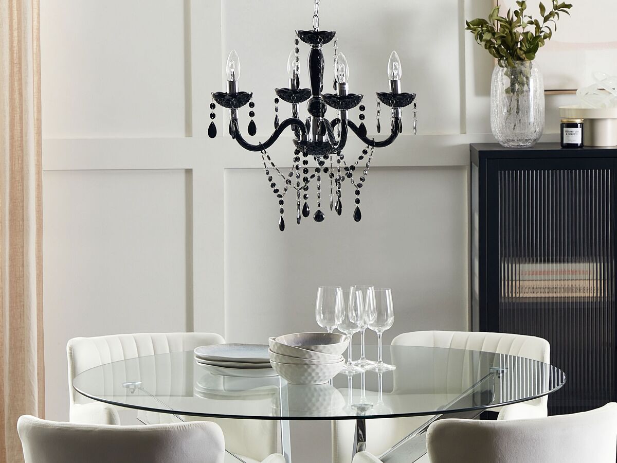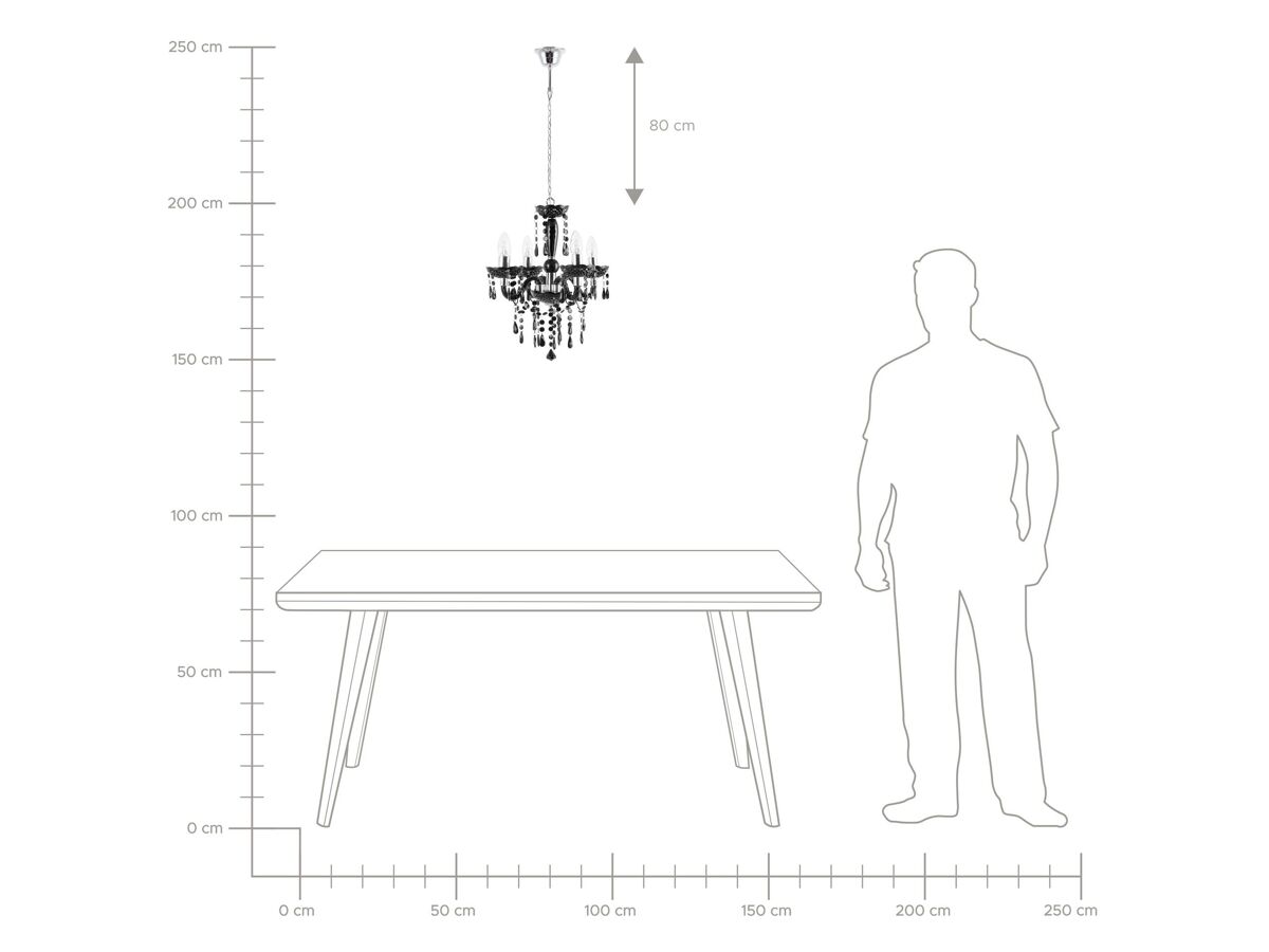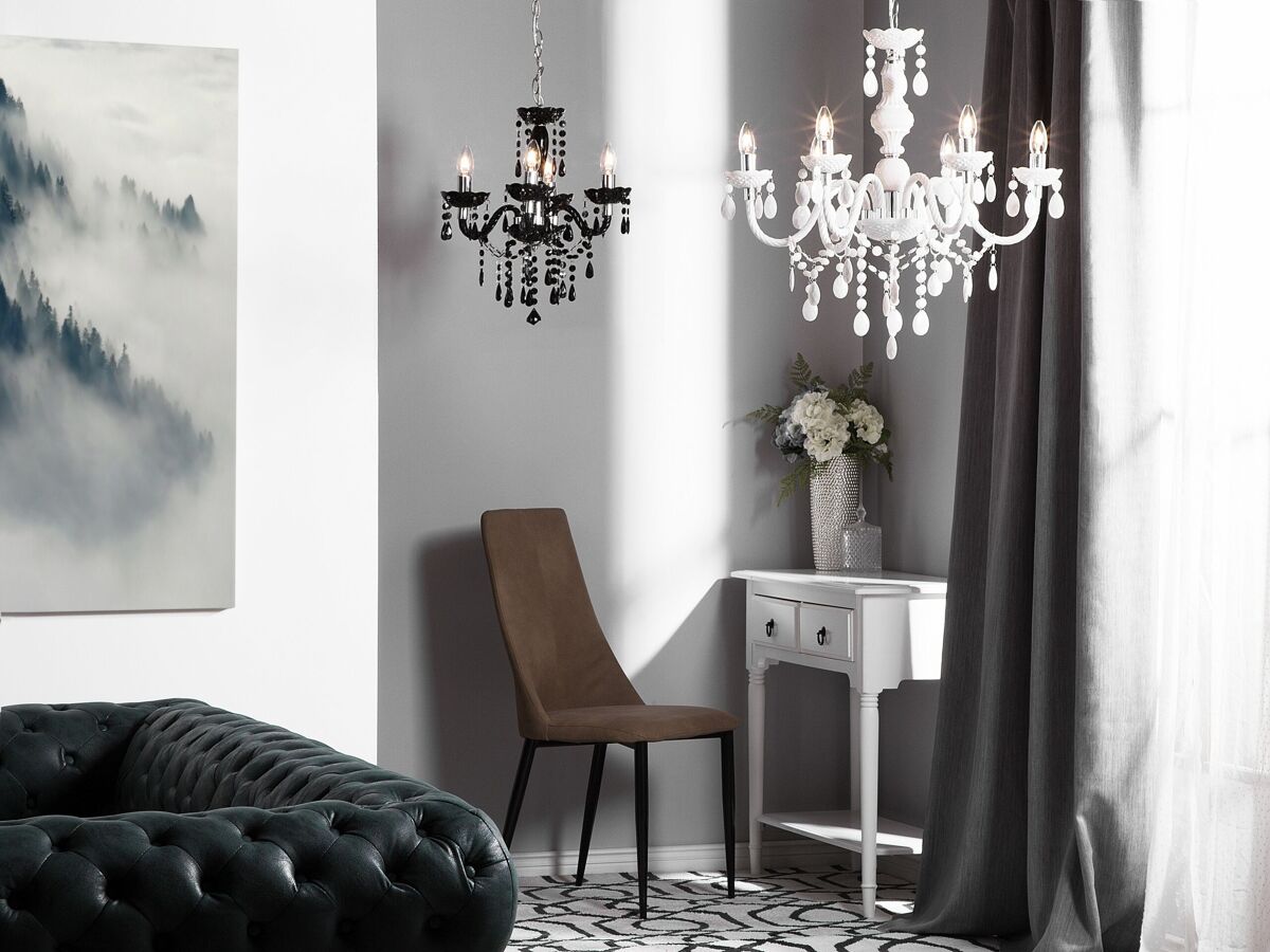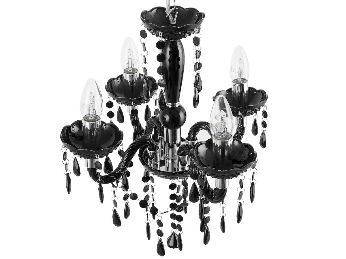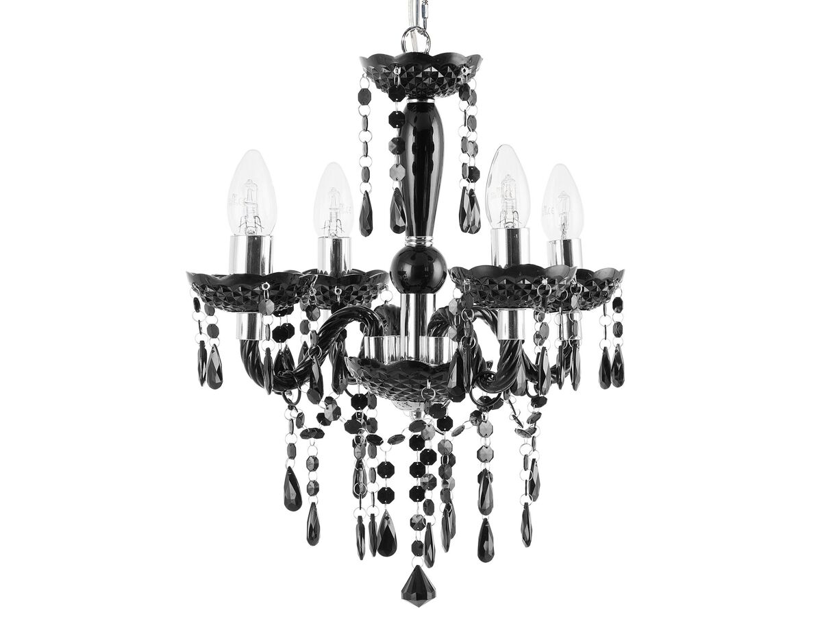 Candeeiro de teto elegante com acabamento brilhante. Com um toque elegante, este lustre de 4 braços é uma adição elegante a uma sala de estar ou de jantar. Feito de material sintético de alta qualidade, acomoda 4 lâmpadas de vela que, juntamente com cristais acrílicos brilhantes pendurados, proporcionam um efeito de luz maravilhoso. Esta luminária de ambiente combina na perfeição com um estilo de interior tradicional e glamoroso.