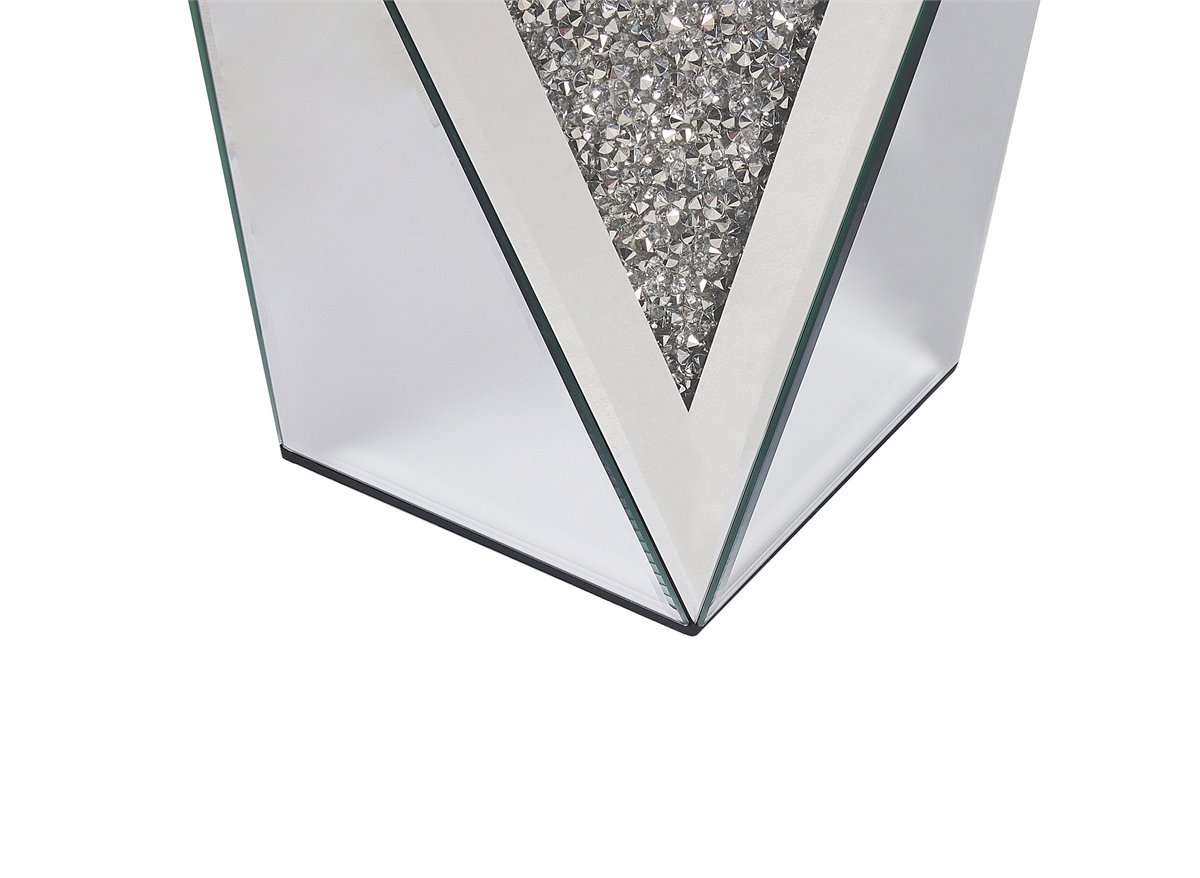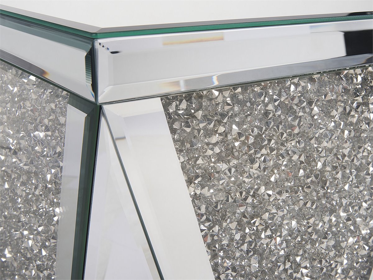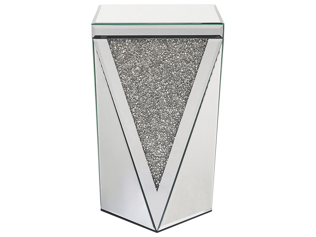 Mesa lateral em estilo glam. Ainda que compacta esta mesa de apoio de estilo glamoroso irá adicionar muita elegância ao interior da sua casa. Produzida em MDF, possui acabamento espelhado e um design moderno e intrigante. Pode ser usada como mesa de apoio lateral, ao lado do sofá na sua sala, ou como mesinha de cabeceira no seu quarto.
