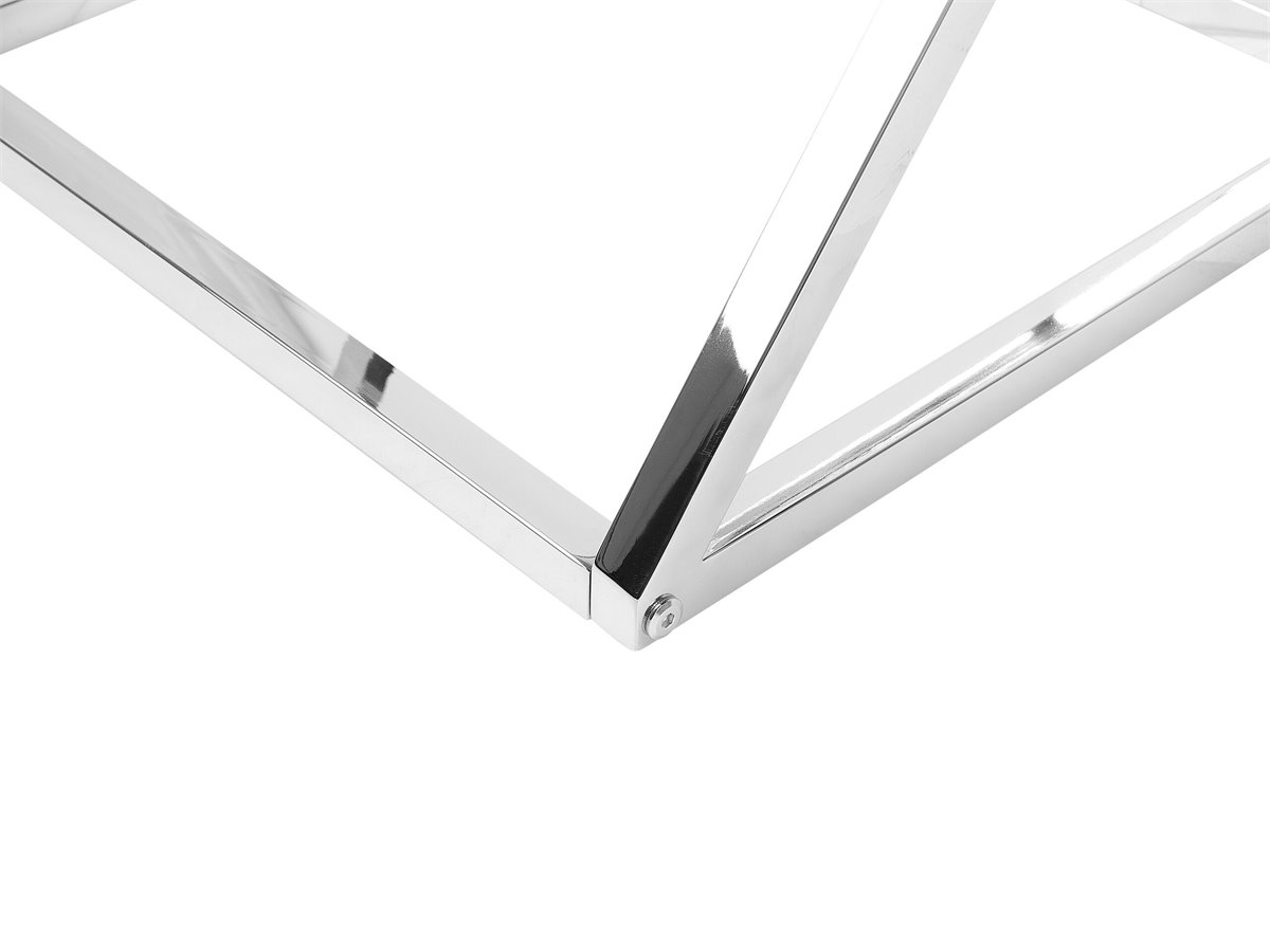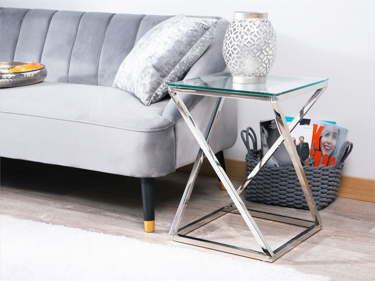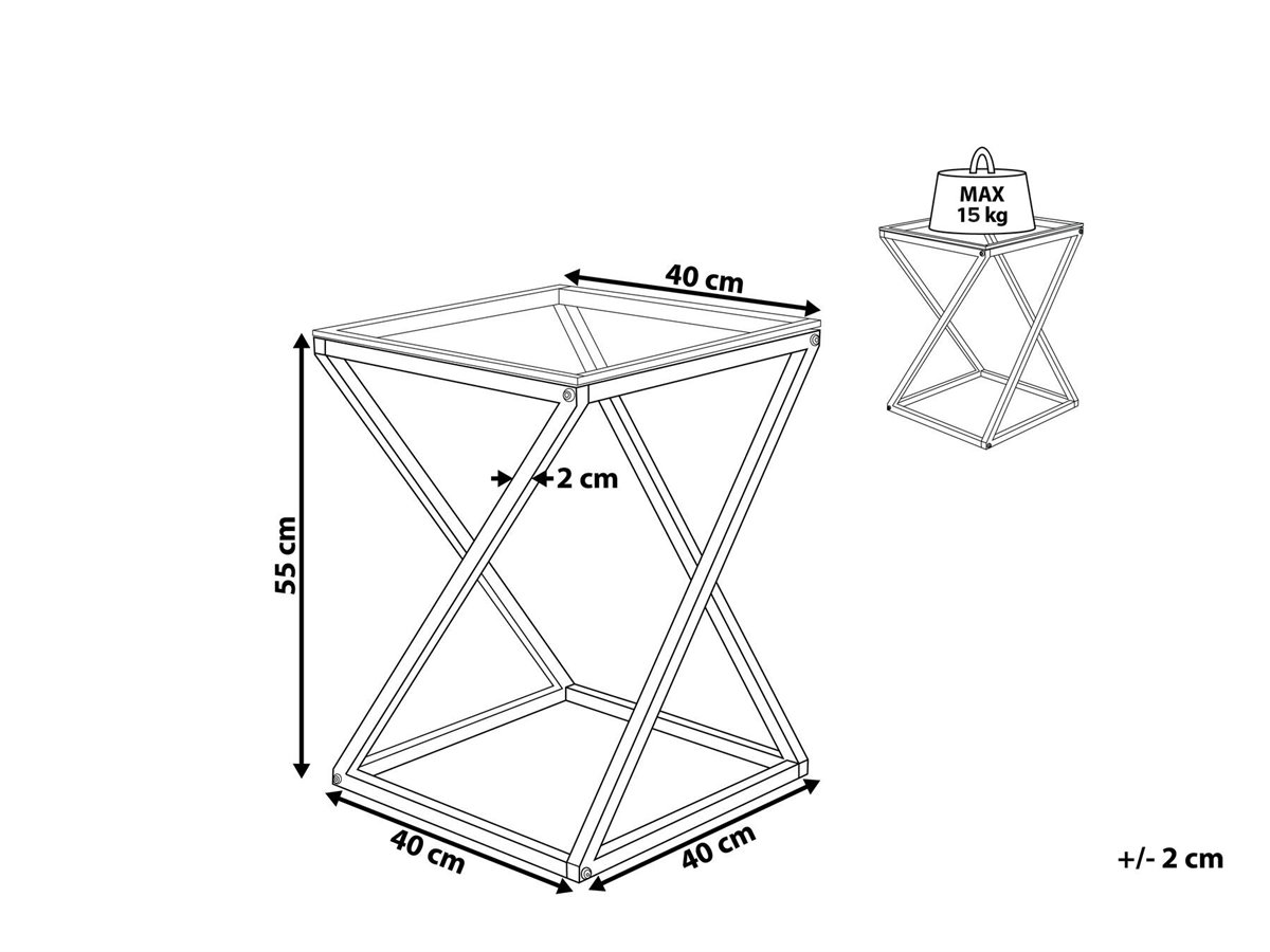 Mesa de apoio sofisticada e única. Esta mesa de apoio sofisticada, de design moderno, irá adicionar um toque de classe à sua decoração. Excecionalmente robusta e de fácil manutenção, a peça apresenta um tampo transparente, feito de vidro temperado durável e uma base metálica robusta que garante a estabilidade de toda a construção. O seu visual marcadamente industrial, conjugado com os seus acabamentos brilhantes, adicionará um toque de luxo a qualquer divisão. Detalhes: Tipo de Produto: Mesa de apoio Estilo: Glamour Cor: Prateado Tipo de Material: Vidro Material Principal: Vidro Material Adicional: Aço inoxidável Material da Superfície: Vidro Formato: Quadrado Acabamento: Polido Dimensões: Largura: 40 cm Comprimento: 40 cm Altura: 55 cm Peso: 6 kg Peso Máximo Suportado: 15 kg A oferta inclui: 1 x Mesa de apoio Características Principais: Tampo de mesa espesso em vidro temperado, Acabamento com brilho suplementar, Decorativo e funcional, Design elegante, Estrutura sólida Informação de Montagem: Parcialmente necessária. 20-40 min. Dicas de Manutenção: Vidro: 1.Para evitar arranhões, não use produtos de limpeza em creme 2.Limpe com um detergente neutro ou um condicionador de vidro com um pano macio. Secar imediatamente após a limpeza. Aço inoxidável: 1.Para elementos cromados ou cobre, use agente de polimento 2.Para evitar arranhões, não use produtos de limpeza abrasivos 3.Limpe com um detergente suave num pano macio, seque depois.
