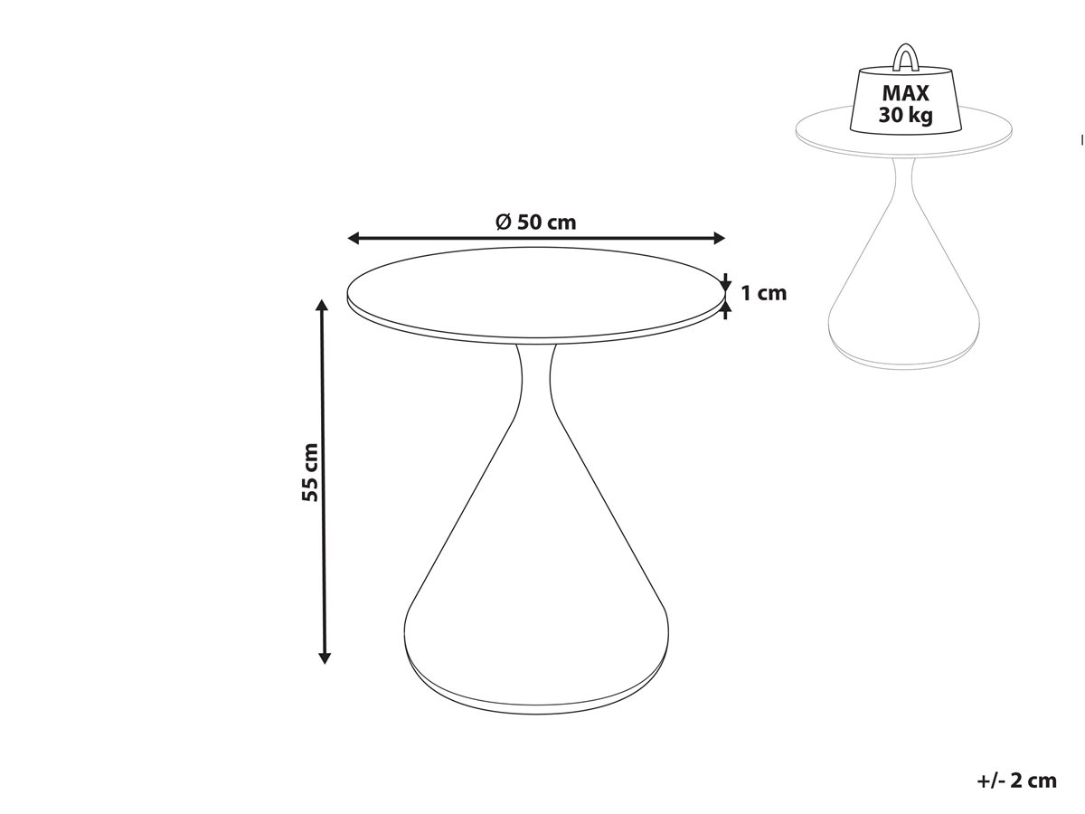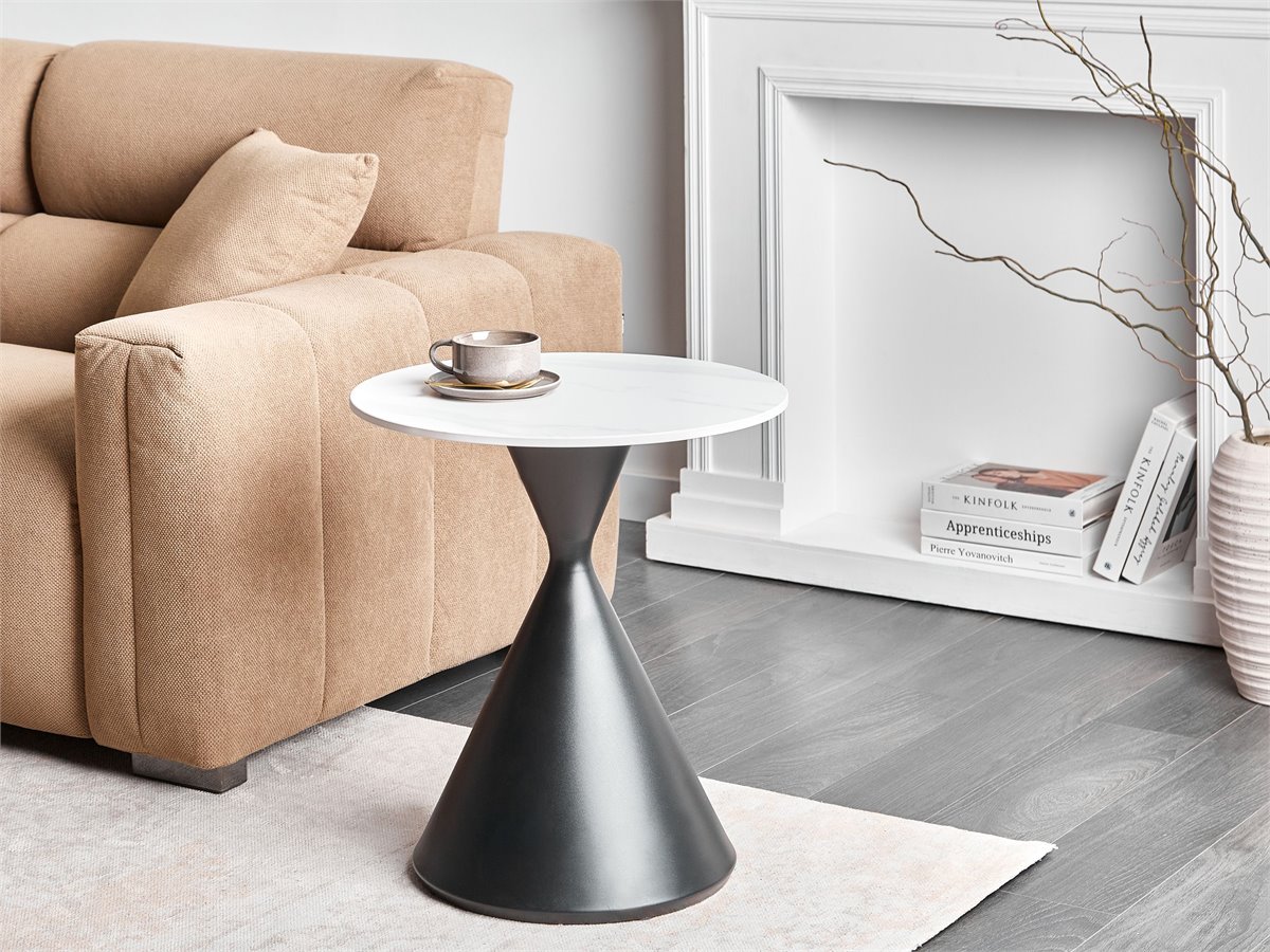 Mesa de apoio de estilo moderno. Uma peça de destaque em qualquer sala de estar, esta mesa de apoio alia elegância a um design contemporâneo. O tampo em pedra sinterizada branca exibe um luxuoso acabamento marmoreado, que conjuga a beleza natural com a durabilidade. Assente numa base metálica preta, com um impressionante design escultural, a peça acrescenta um toque de sofisticação a qualquer ambiente. Perfeita para interiores modernos, esta mesa combina funcionalidade e requinte, tornando-se o centro das atenções na sua casa. Detalhes: Tipo de Produto: Mesa de apoio Estilo: Moderno Cor: Preto Tipo de Material: Cerâmica Material Principal: Pedra sinterizada Material Adicional: Aço Material dos Pés: Metal Material da Superfície: Cerâmica Formato: Redonda Acabamento: Revestimento em tinta em pó Armazenamento: Não Dimensões: Largura: 50 cm Comprimento: 50 cm Altura: 55 cm Peso: 9 kg Peso Máximo Suportado: 30 kg A oferta inclui: 1 x Mesa de apoio Características Principais: Design moderno, Decorativo e funcional, Fará do seu interior um espaço mais elegante, Materiais de alta qualidade, Fácil manutenção Informação de Montagem: Parcialmente necessária. 5-15 min. Dicas de Manutenção: Pedra sinterizada: 1.Feito para uso interno, sem necessidade de cuidados extras de limpeza. Aço: 1.Para evitar arranhões, não use produtos de limpeza abrasivos 2.Limpe com um detergente suave num pano macio, seque depois 3.Para elementos cromados ou cobre, use agente de polimento.