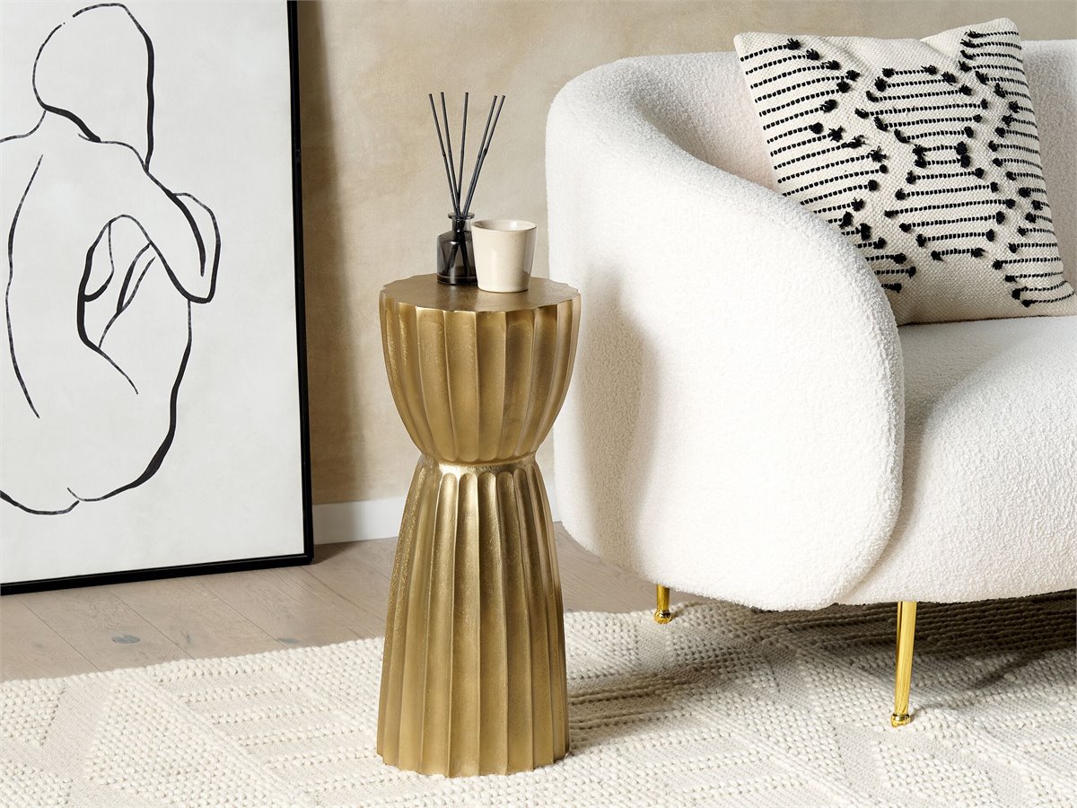 Mesa de apoio com forma única. Melhore o seu espaço quotidiano e faça-o sobressair com esta mesa de apoio. A peça apresenta uma forma única, em forma de pilar, com um acabamento vintage, o que a torna uma grande adição aos interiores do mesmo estilo, bem como aos contemporâneos. Foi feita à mão com precisão em alumínio, o que a torna de baixa manutenção e bastante durável. A peça é também muito estável, e pode usar qualquer uma das extremidades como topo sem se preocupar com uma possível queda.