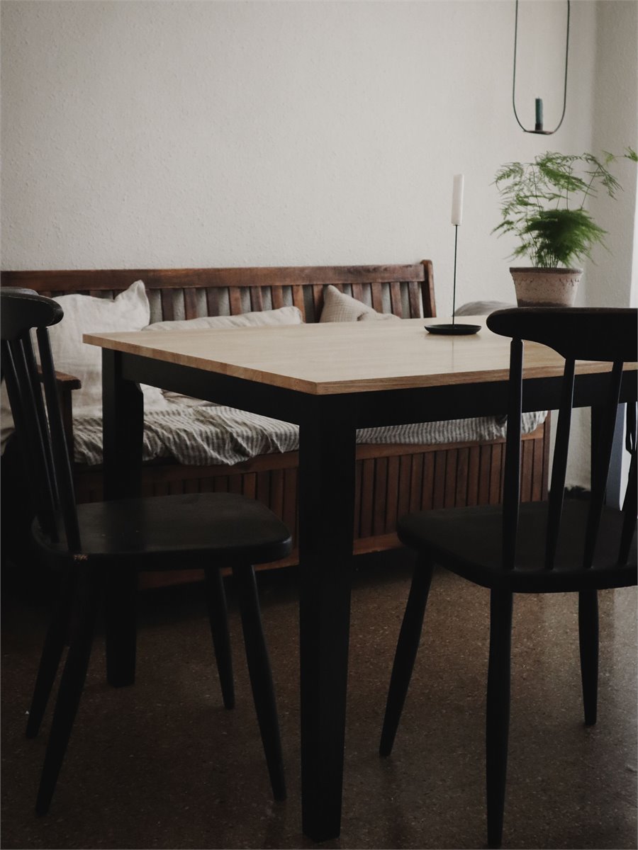 Mesa de jantar com estilo escandinavo. Esta mesa de jantar é um complemento perfeito para a sua sala de jantar ou cozinha. Transmitirá ao interior de sua casa uma aragem encantadora de casa de campo, tornando-a mais viva, luminosa e adorável. Com acabamentos naturais, e pés numa cor elegante, o que proporciona um contraste perfeito com o tom claro quente da madeira. Aprecie o visual encantador e o fabrico sólido e de alta qualidade desta mesa de jantar, que garante longevidade e durabilidade.
