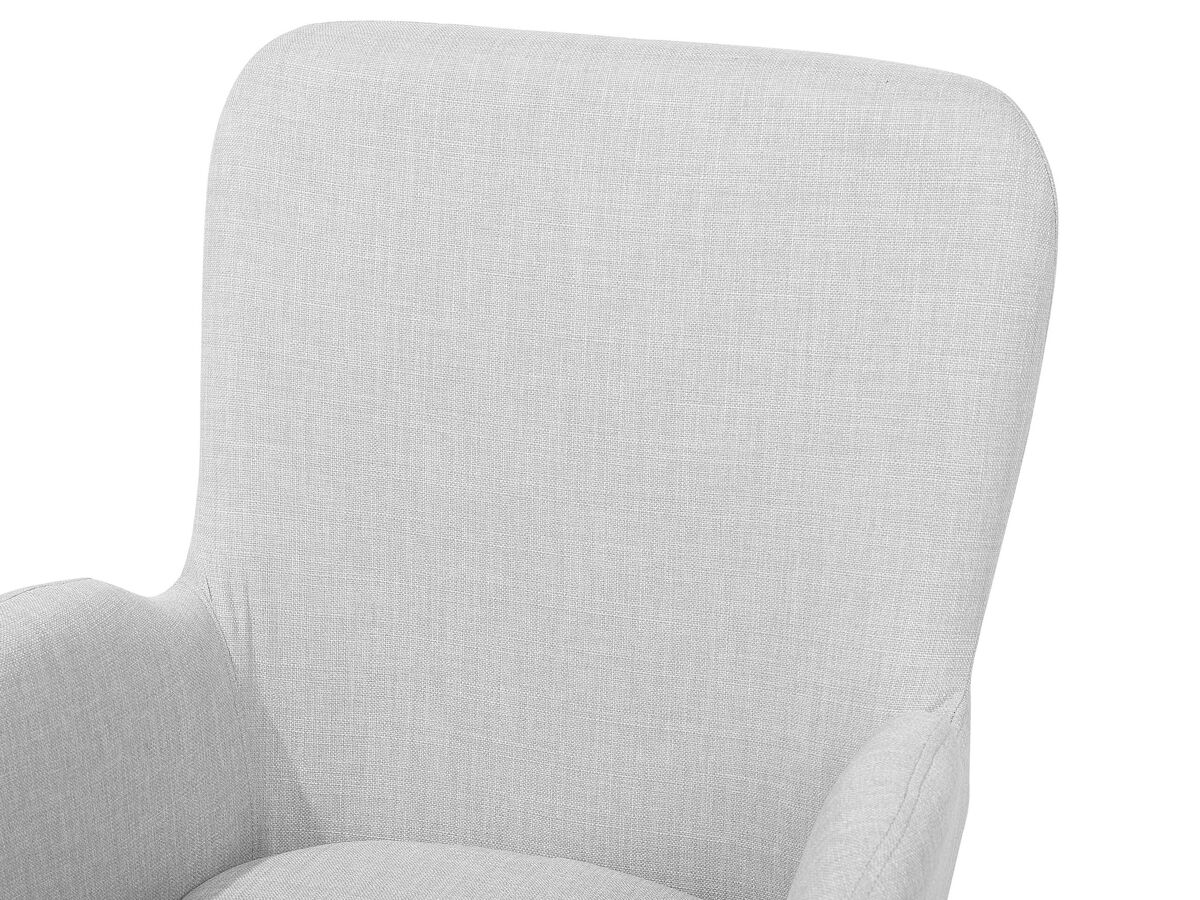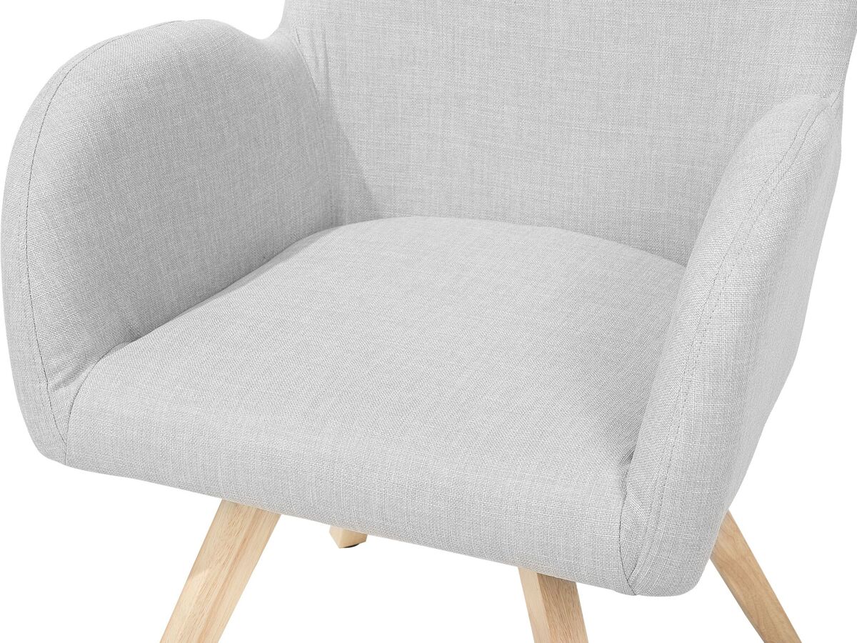 Poltrona de estilo moderno. Esta poltrona de estilo moderno e minimalista combinará bem com uma decoração escandinava de perfil contemporâneo ou vintage. Concebida com pernas angulares e revestida com um tecido durável com um elegante padrão sólido em tons neutros. O encosto alto está ligado a apoios de braços curvos e perfilados e o assento almofadado proporcionará conforto ao sentar.