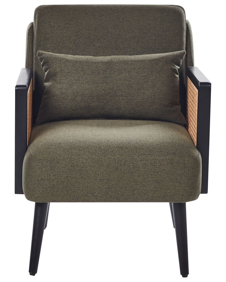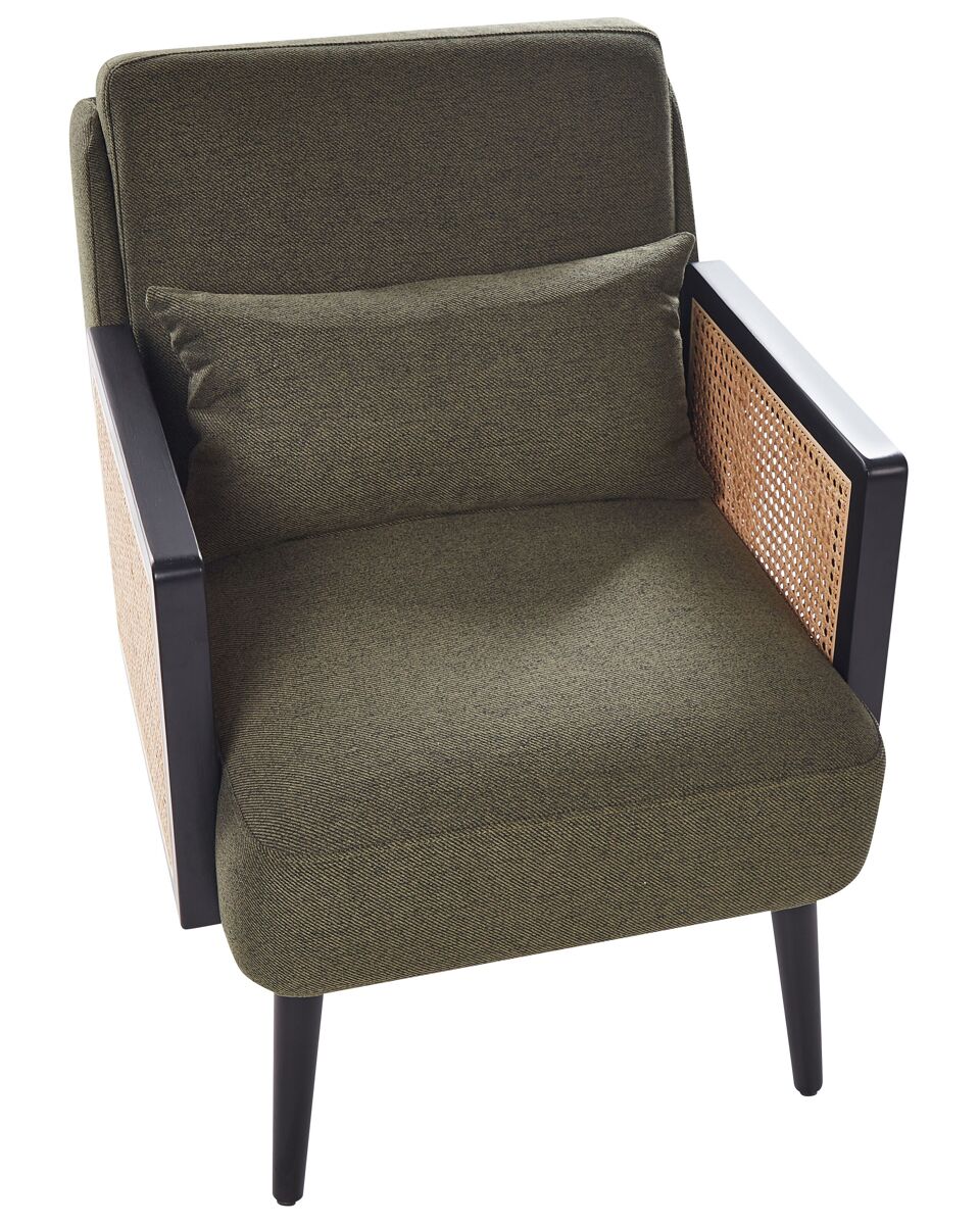 Cadeirão com trança de rattan. Descubra o fascínio desta poltrona meticulosamente trabalhada, que emana sofisticação e complementa os gostos mais exigentes. Mergulhe no conforto luxuoso do seu revestimento em poliéster, secundado por uma estrutura robusta de madeira e pernas elegantemente cónicas. A trança decorativa em rattan nos braços acrescenta charme e elegância ao conjunto. O tom neutro versátil harmoniza-se facilmente com diversos interiores. Para garantir a longevidade do seu pavimento, foram integradas de forma cuidadosa tampas protetoras de plástico nas pernas. Detalhes: Tipo de Produto: Poltrona Estilo: Tradicional Cor: Verde Tom: Verde escuro Tipo de Material: Tecido Material Principal: Poliéster Material Adicional: Madeira de eucalipto Material do Enchimento: Espuma Material dos Pés: Madeira Material do Assento: Tecido Composição Material: 100% poliéster Estilo dos Braços: Direito Apoiador de Braço: Sim Protetores para os Pés: Sim Desenho: Sólido Reclinação: Não Construção do Assento: Madeira Densidade da Espuma do Assento: 28/18 kg/m3 Dimensões: Altura das Poltronas: 60 cm Profundidade: 78 cm Grossura do Assento: 17 cm Altura do Assento: 41 cm Largura: 65 cm Altura: 80 cm Superfície do Assento: 53x65 cm Peso: 19 kg Peso Máximo Suportado: 150 kg A oferta inclui: 1 x Poltrona, 1 x Almofada Características Principais: Momentos de relaxamento perfeitos, Acrescenta um toque de aconchego ao seu espaço interior, Perfeito tanto para o quarto como para a sala, Design clássico com um toque de modernidade, Materiais de alta qualidade Informação de Montagem: Parcialmente necessária. 5-15 min. Informações Adicionais: Para garantir a estabilidade da construção e segurança de uso, recomenda-se verificar se o produto foi montado corretamente 2 semanas após a instalação. Também é recomendado verificar se os parafusos estão devidamente apertados uma vez a cada 3 meses. Dicas de Manutenção: Poliéster: 1.Aspire com um acessório adequado 2.Limpe com um shampoo seco e uma esponja húmida ou com um detergente neutro. Madeira: 1.Secar imediatamente após a limpeza, para impedir que a água se acumule no material 2.Use apenas detergente neutro e um pano macio. Sempre limpe na direção do grão 3.Só para artigos com acabamento a óleo: podem ser novamente oleados após algum tempo para se manterem em bom estado.