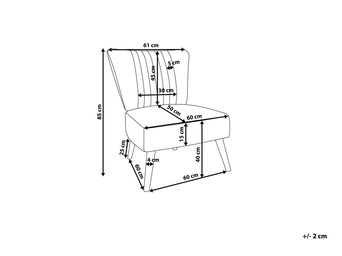 Poltrona baixa em estilo retro. A forma funcional e simples desta poltrona revelar-se-á de extrema utilidade num quarto, numa sala de estar ou num hall de entrada. O design aberto e sem braços com pernas curtas é um complemento perfeito para qualquer interior moderno e minimalista. Os estofos em tecido de alta qualidade numa cor elegante e tradicional conferem classe e requinte a qualquer espaço. O design da poltrona é completado por quatro pernas de madeira robustas, que lhe asseguram estabilidade.