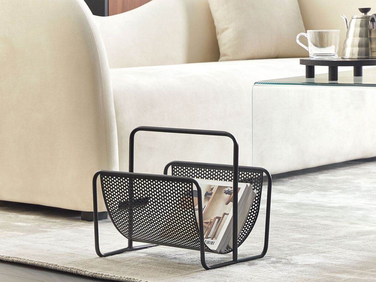 Suporte para jornais ou revistas. Se deseja manter as suas revistas ou jornais favoritos organizados e próximos de si, definitivamente deve introduzir um porta-revistas no seu espaço. Este é feito de ferro de alta qualidade, muito durável, mas apesar de tudo é leve. Graças a uma pega na parte superior, pode movê-lo facilmente e levá-lo para várias divisões. O seu design simples e moderno e a cor clássica adaptam-se à maioria dos estilos de interiores, desde retro a contemporâneo.