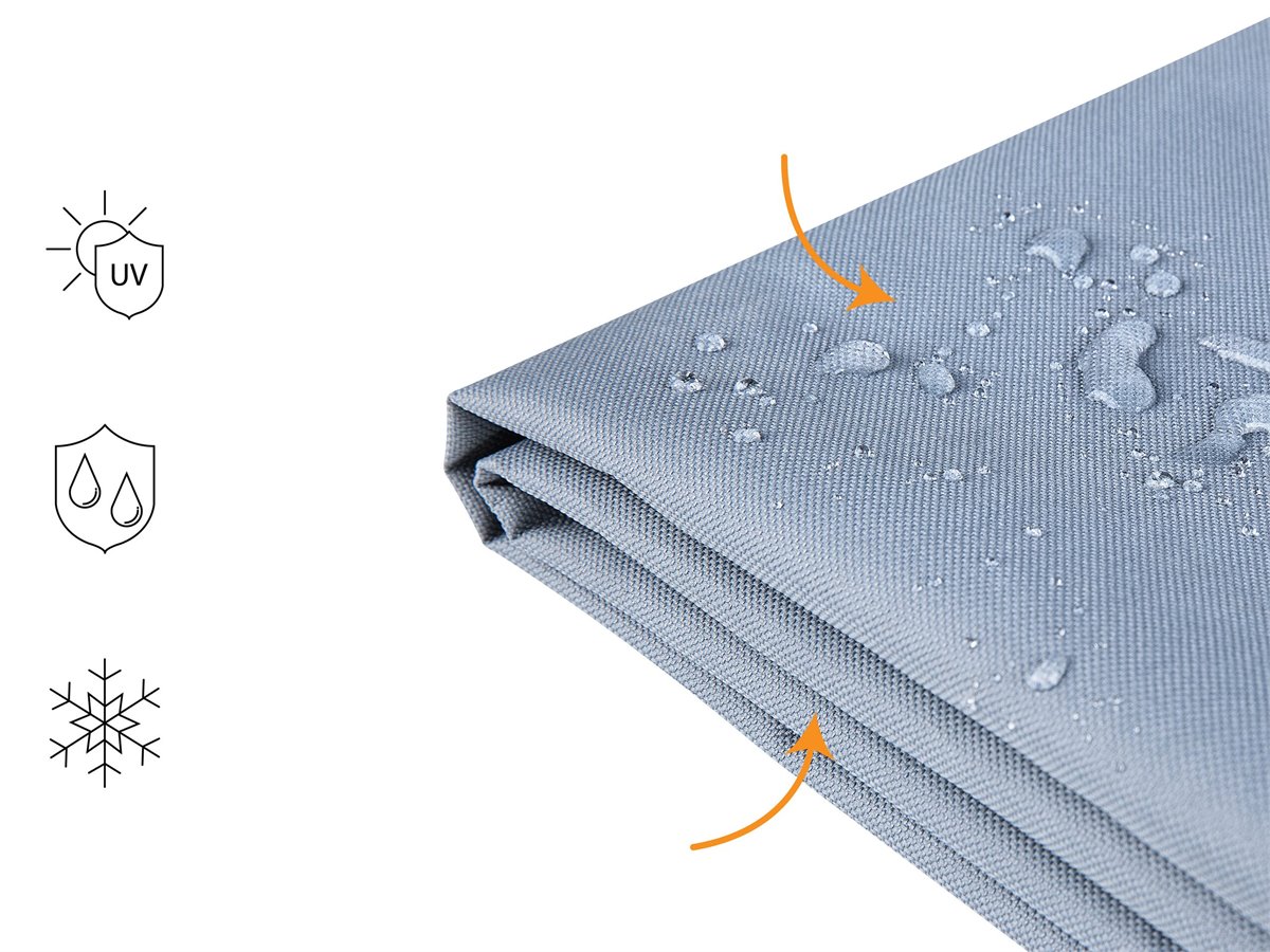 Características Principais: Extraordinariamente fácil de cuidar, Fabrico sólido e preciso, Resistência UV, Impermeável graças ao uso de materiais de qualidade, O acabamento repelente de água faz com que quaisquer derrames permaneçam à superfície, Fácil de colocar e de retirar graças ao fecho