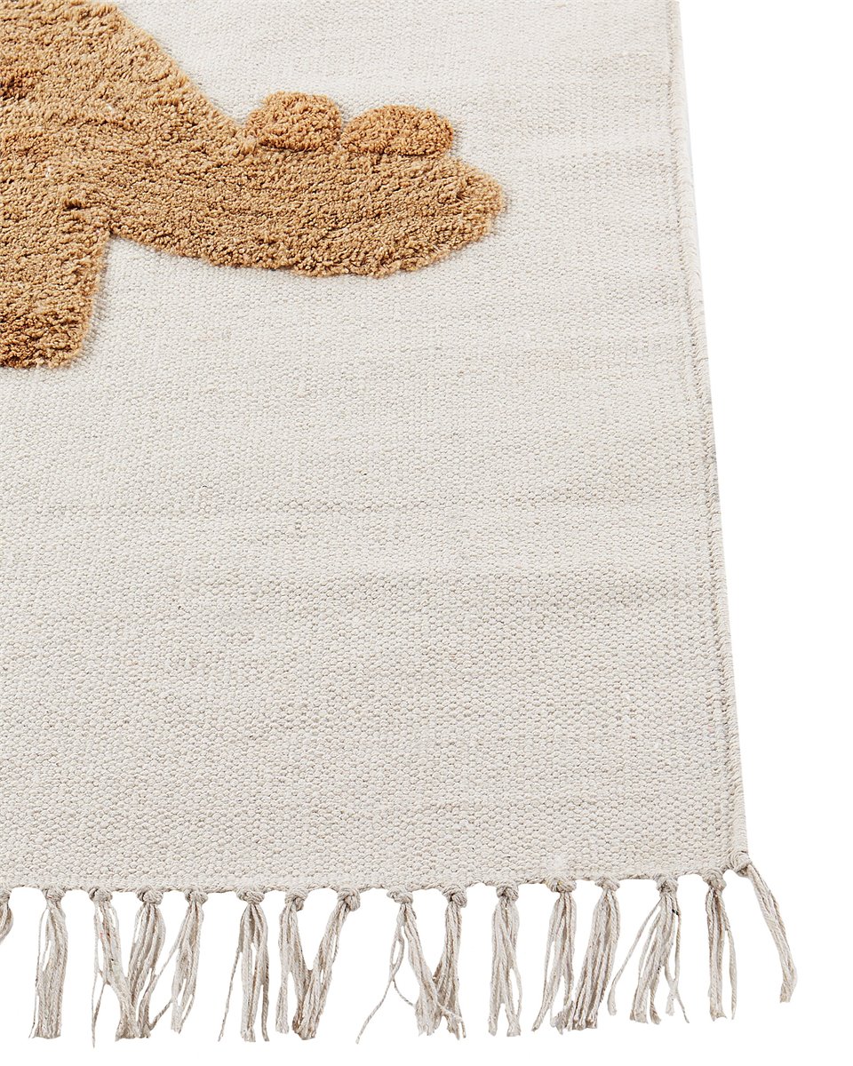 Tapete infantil feito à mão com motivo. Envolva o seu pequeno explorador num encanto pré-histórico com este tapete de algodão feito à mão. Feito com cuidado, apresenta bordados divertidos de dinossauros, dando um toque extravagante a qualquer divisão. Completado com franjas e adequado para pavimento aquecido, é o companheiro perfeito para aventuras imaginativas. Detalhes: Tipo de Produto: Tapetes para crianças Estilo: Moderno Cor: Creme Tom: Creme claro Tipo de Material: Tecido Material Principal: Algodão Composição Material: 100% algodão Formato: Retangular Parte Interior anti - deslizante: Não Densidade: 1500 Desenho: Para crianças Compatível para Pisos Aquecidos: Sim Costura: Tecido à mão Dimensões: Altura: 1 cm Largura: 200 cm Comprimento: 140 cm Peso: 3.2 kg A oferta inclui: 1 x Tapete Características Principais: Oferece possibilidades de jogo ilimitadas, Feito à mão com extrema atenção aos detalhes, Incrivelmente macio, Materiais robustos e de fácil manutenção, Qualidade superior Informação de Montagem: Não requer montagem Informações Adicionais: Após desembalado o produto requer algum tempo até alcançar o estado ideal. Recomendamos desdobrá-lo o mais rapidamente possível, aguardando até 72 horas para que alise, além de colocar um peso nas extremidades, para obter melhores resultados Dicas de Manutenção: Algodão: 1.Gire periodicamente o seu tapete 180 ̊ para garantir um desgaste uniforme e evitar descoloração causada pela exposição ao sol 2.Para manchas difíceis, limpe a superfície com um pano de algodão húmido que não manche. Se necessário, use um líquido de lavagem de lã. Não molhe demais o tapete e seque-o após a limpeza. Use apenas produtos de limpeza recomendados para carpetes. Entre em contacto com um especialista para remover manchas dificies 3.Aspirar uma vez por semana com uma potência de sucção média usando um acessório para tecidos, na direção do pelo 4.Para uma utilização confortável, recomendamos arejar o tapete desembalado durante algumas horas (o melhor seria um ou dois dias). Isto permite que o cheiro natural do material se desvaneça 5.Remova todas as manchas imediatamente com um pano húmido que não manche. Limpe da borda para o meio do tapete, não esfregue.
