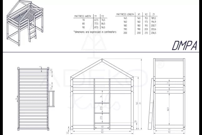| Dimensão | Altura total da dimensão | Comprimento total da dimensão | Dimensão da largura total | Dimensão do comprimento do colchão | Dimensão da largura do colchão |
