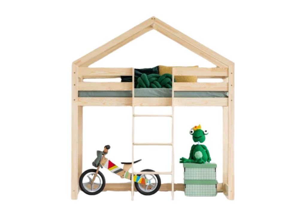 Dê ao seu filho uma terra de sonhos e aventuras com a nossa clássica cama alta de madeira! Fabricado em madeira de pinho de alta qualidade, garante durabilidade e segurança por muitos anos. O seu design intemporal adapta-se a todos os quartos e o seu acabamento em madeira natural traz calor e harmonia ao interior. Ideal para salas pequenas – maximiza o espaço ao mesmo tempo que proporciona mais espaço para brincar e guardar. Não é apenas funcional, mas também seguro, graças às bordas arredondadas e à construção estável que garantem um sono reparador.