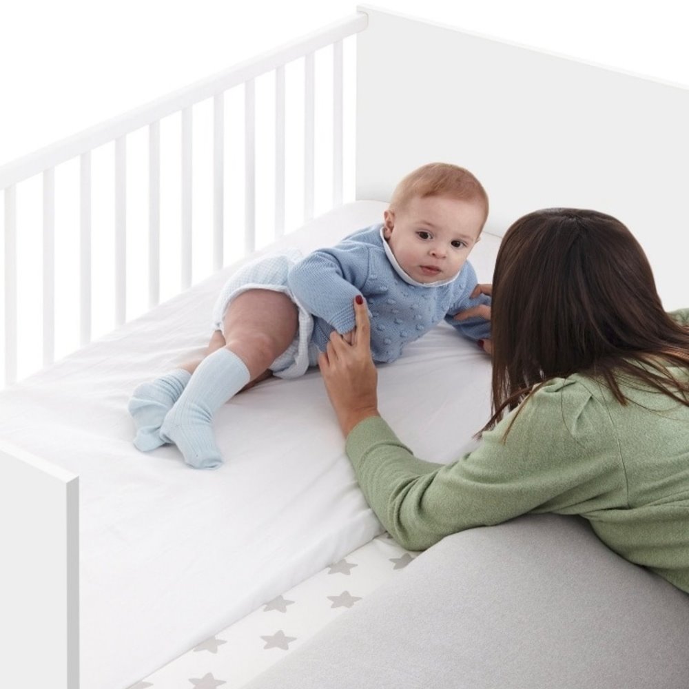Evolutivo: Pratique o co-sleeping para ter o seu bebé ao seu lado, kit de co-sleeping incluído. É convertível em berço e tem também o kit de grades de proteção incluído.