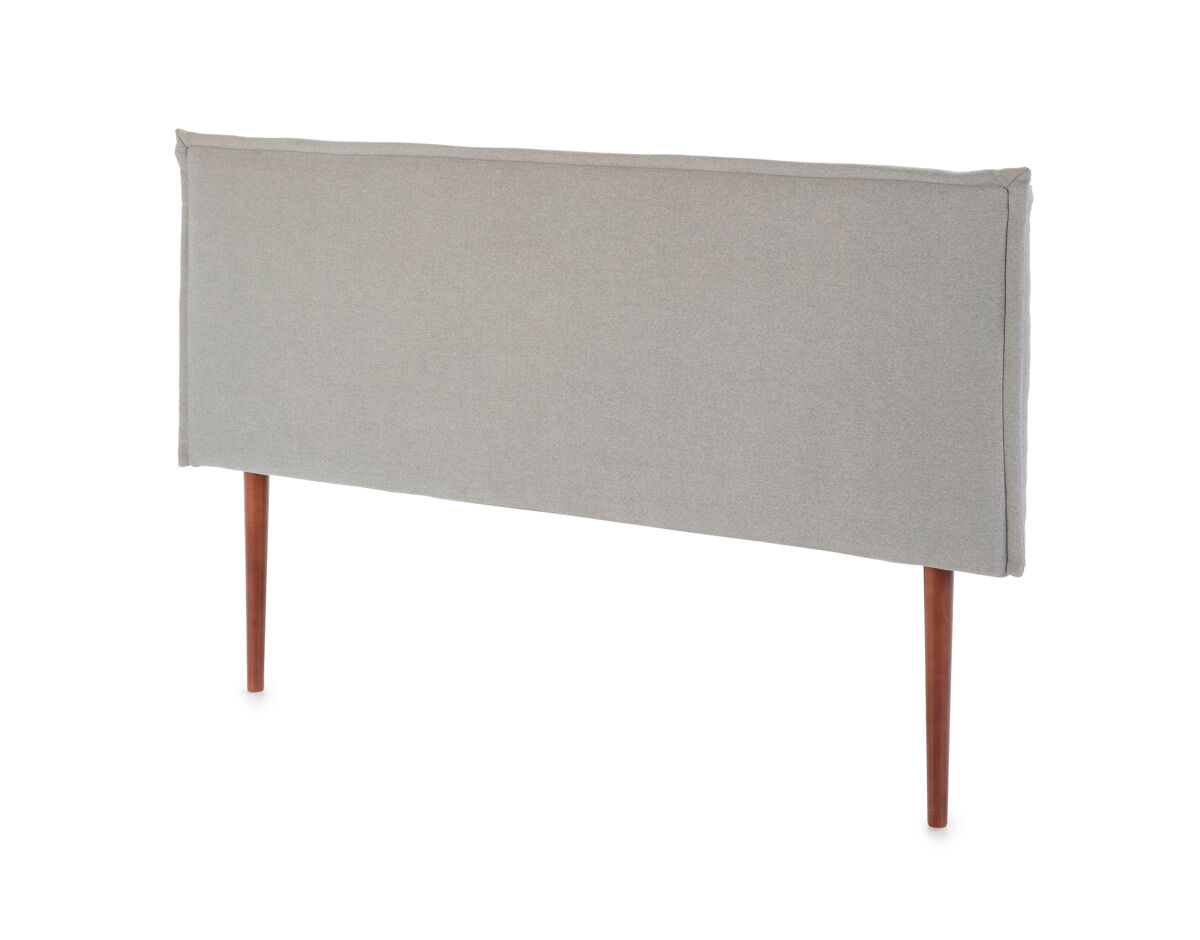 - Estofo em tecido cinzento com debrum cinzento e disponível em vários tamanhos. Pés de estilo nórdico em madeira de faia na cor Walnut. Design clássico e elegante que dará um toque de distinção ao seu quarto.